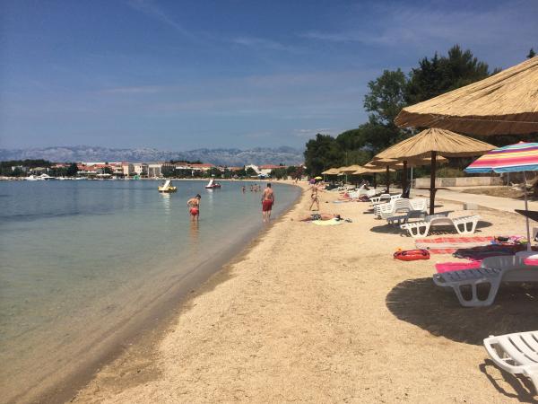 Biba Apartments are located in Zukva, not far from the historical town of Nin, only 150 meters from the beach. In our surroundings there are various types of beaches (sandy, pebble and stone beach). Close to the market and offering home-made fruit and vegetables. Friendly hosts and secured parking for guests. Close to the royal beach of Nin, the tourist center of Zaton, a medicinal salt mine ... A4 2 ~ Apartment for four persons plus two extra beds (55 m2) Apartment consists of terrace, living room with TV, kitchen, two bedrooms and bathroom.