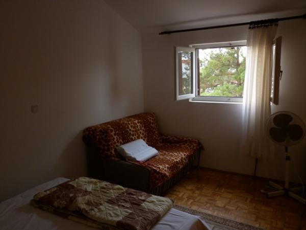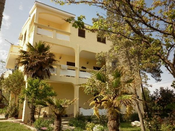 Pleasant apartments in a house with a large shady yard, something out of the town of Nin. The house is located 300m from the sea, 700 m from the sandy beach and 10 minutes walk to the center. Parking is provided, each apartment has a terrace while users rooms with bathroom could use a table in the Loggia or in the yard.