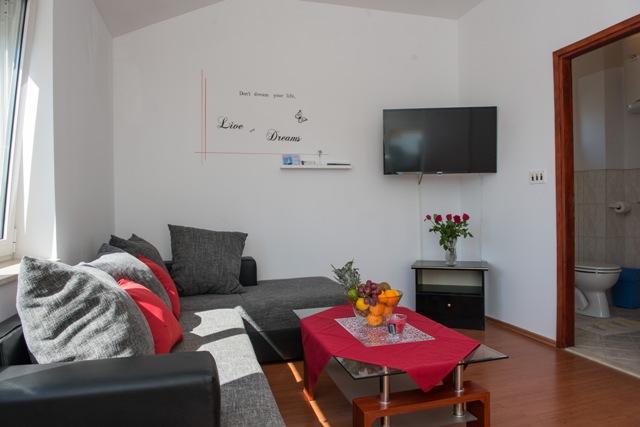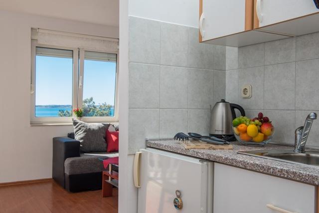Apartments Fila consists of 6 units, 4 one-room apartments and two studio apartments. The apartments are located in a quiet location, approx. 30 meters from the Mulo-Vrsi beach, 250 meters from the center of Mulo-Vrsi, where there are numerous restaurants, souvenir shops, and shops. In the immediate vicinity, about 50 meters away, there are: two cafes and a fast food restaurant. Mulo-Vrsi beach offers various sports activities such as: kite-surfing, wind-surfing, rent a boat, umbrellas and sunbeds.