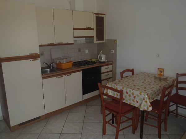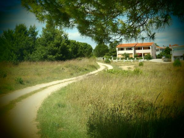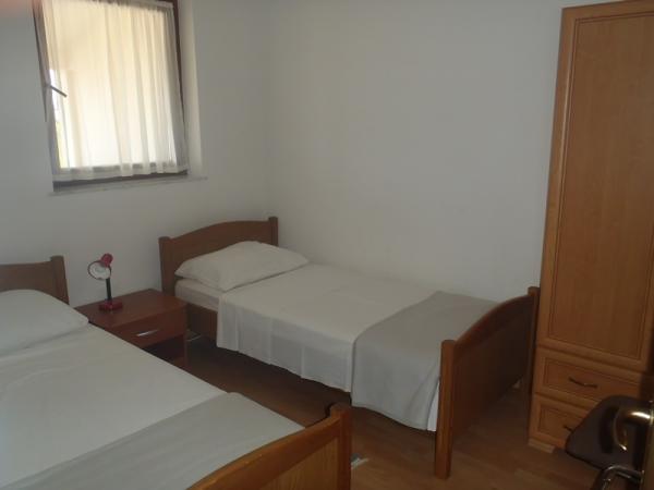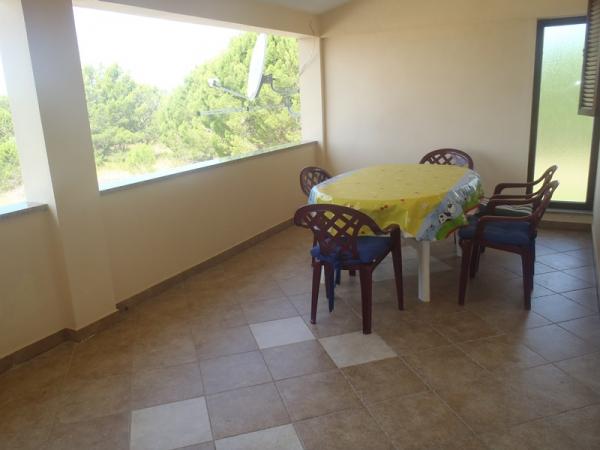 Apartment for 4 persons in a quiet part of Nin (Bilotinjak), surrounded by nature. Situated 300 meters from a sandy beach and 1000 m from the tourist resorts Bay. The apartment has two bedrooms (one bedroom with two single beds and another room with a double bed), kitchen with dining room, bathroom with toilet and a spacious terrace overlooking the sea. Equipped with air conditioning, satellite TV, fridge and small freezer. The yard is a parking and barbecue available for guests.