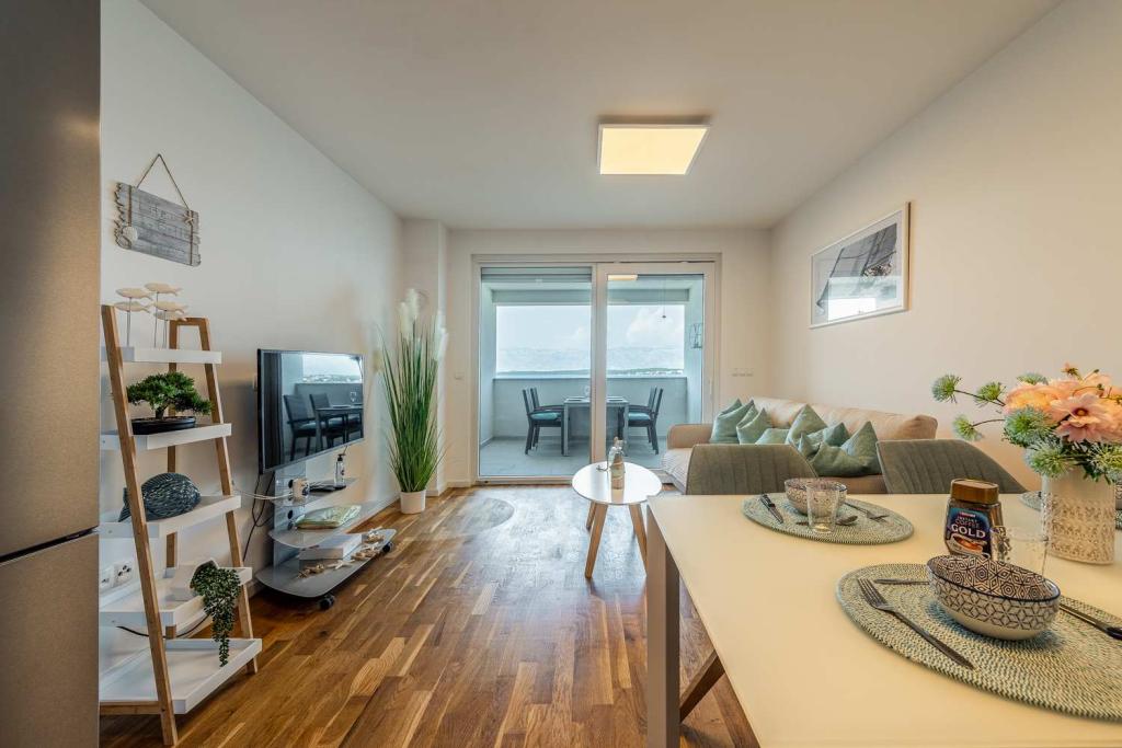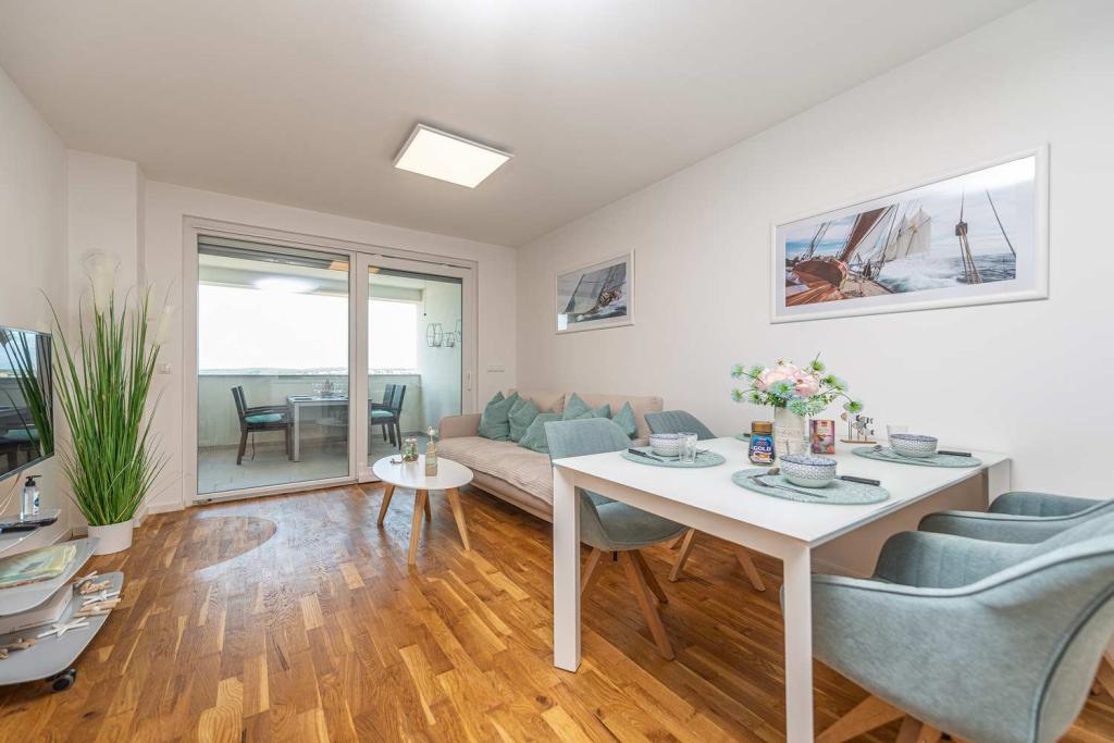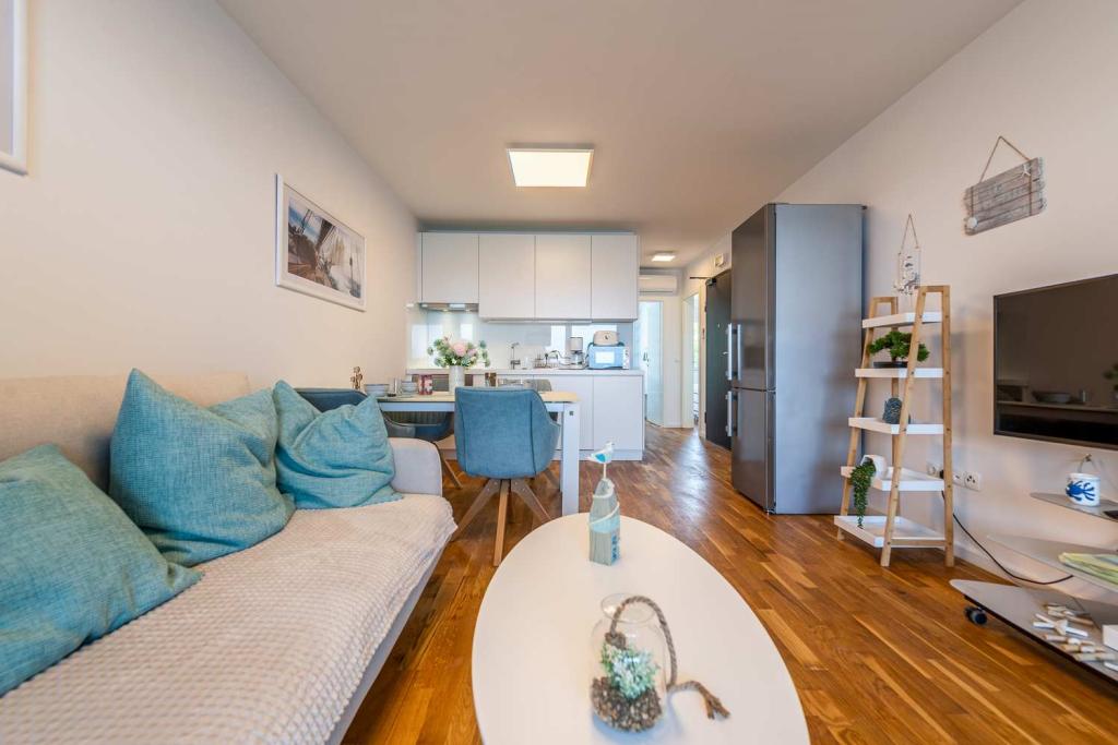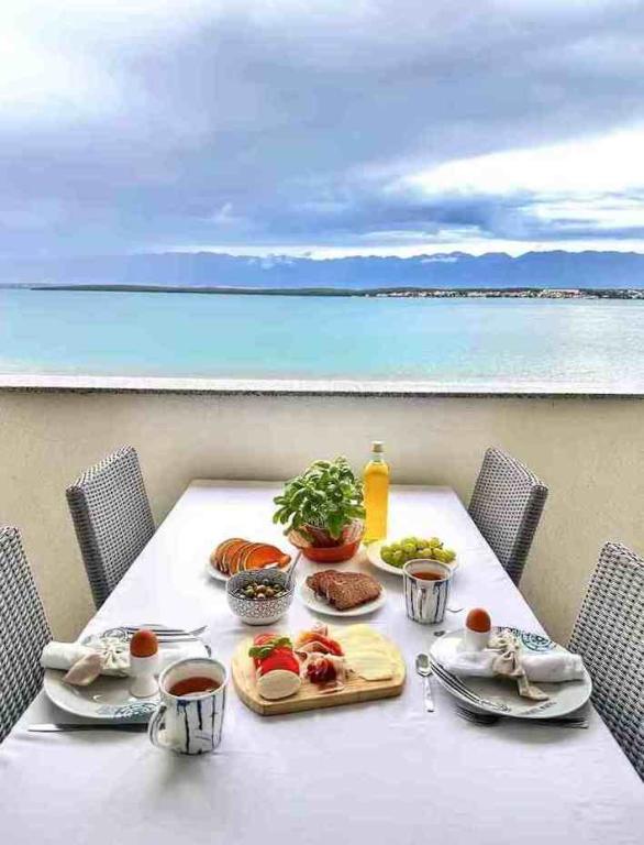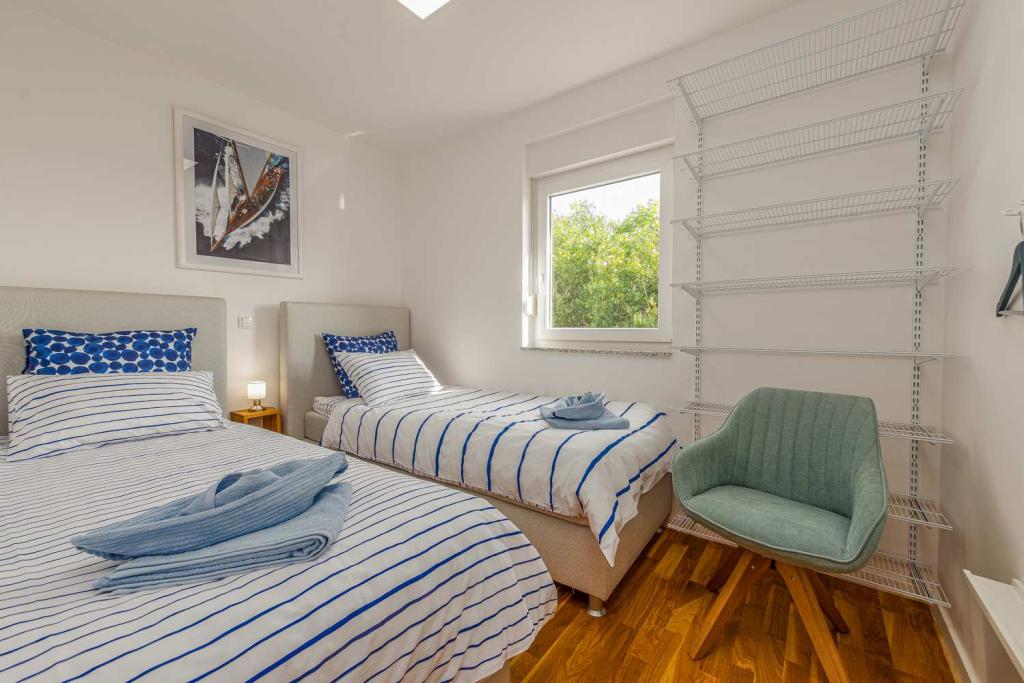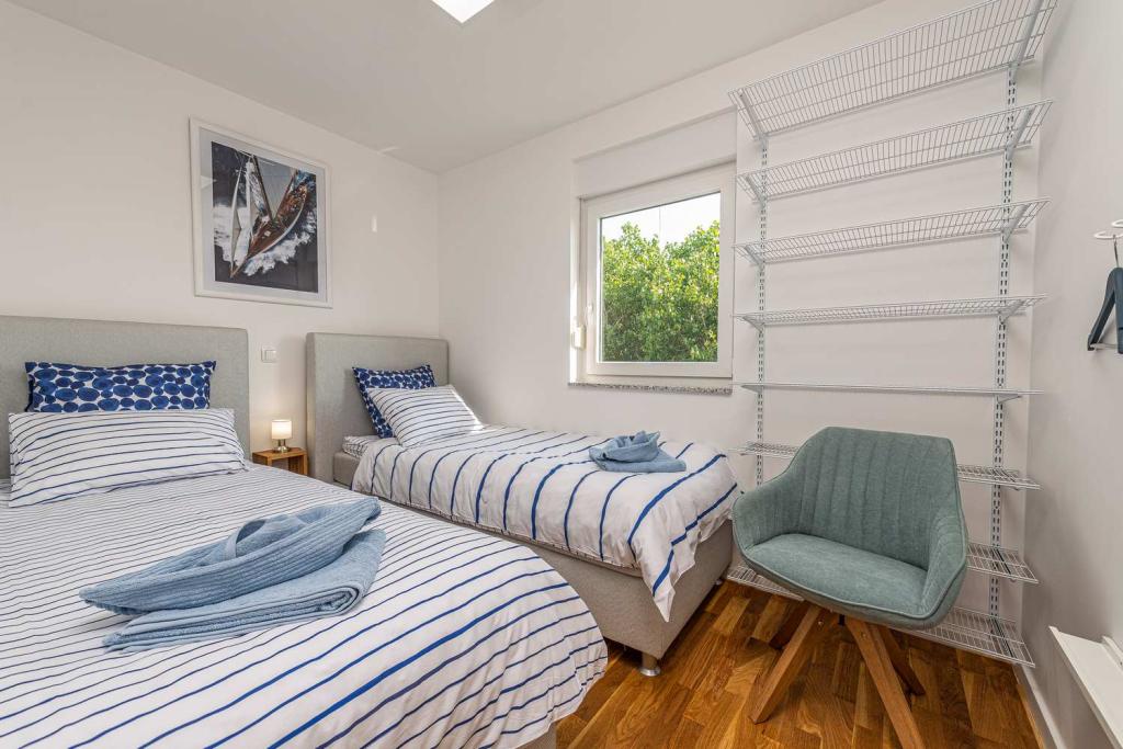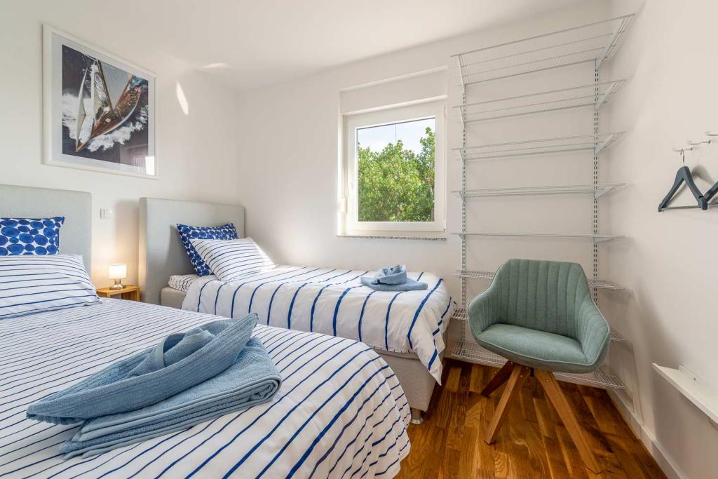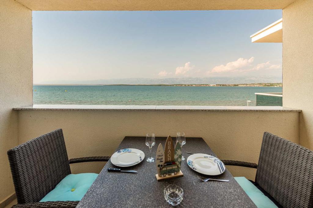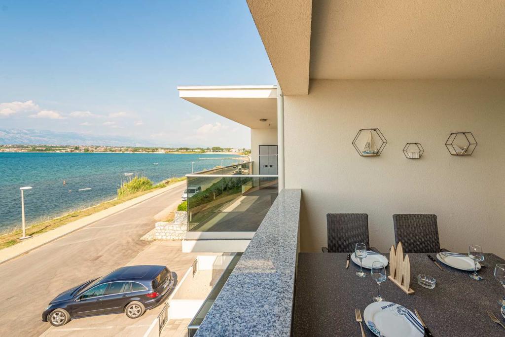 FIRST ROW from the sea! 10 meters from the pedestrian beach. 5 minutes from the old town of Nin. modern apartment, nicely decorated, very well equipped kitchen (dishwasher, toaster, kettle, electric coffee maker, microwave, fridge and freezer, oven, 4 induction hobs. 1 bedroom with double bed + 1 bedroom with 2 beds. shower and washing machine. Fantastic sea view from your terrace.