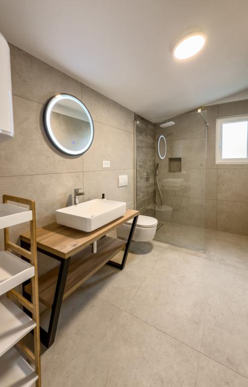 Apartments Sabun offer newly renovated, spacious, and well-equipped apartments located just 15 meters from the sea. Apartment 1 is on the ground floor (100 m² including a terrace) with a private yard, while Apartment 2 is on the upper floor (70 m² with a 50 m² balcony), making them ideal for families and groups of friends. Each apartment features two bedrooms, a living room, a kitchen, and a bathroom, and guests have access to air conditioning, TV, and Wi-Fi. The property also includes private parking and an outdoor shower. A special highlight is the magical sunsets and the stunning view of Mount Velebit.
