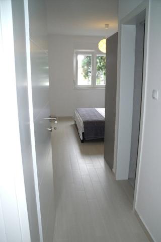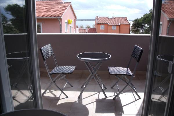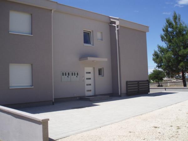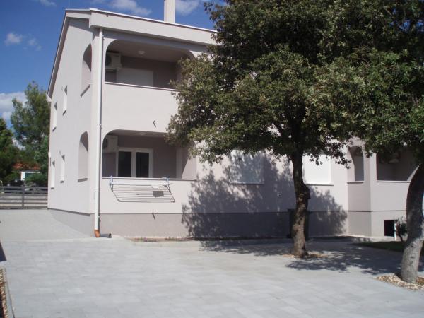 Apartments in the center of Vrsi-Mulo with views of the sea and the beach that is only 50m. Modern apartment with two bedrooms with private bathrooms, living room, fully equipped kitchen and a covered terrace. Enable the use of the Internet. Suitable for 4 people with the possibility of an extra bed for children. The yard is decorated for relaxing in the shade, use a barbeque and parking.