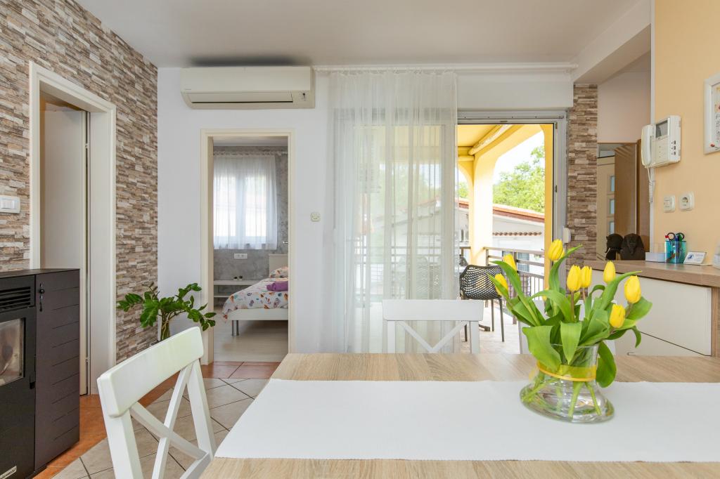 The fully equipped apartment is located on the first floor of the building, in a quiet area of Njivica, 5 minutes' walk to the center or the beach. It consists of a kitchen with a dining room, a living room, a bathroom with a shower, a room with a double bed, a room with two separate beds and a terrace. Free parking is within the building.