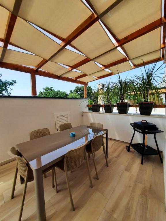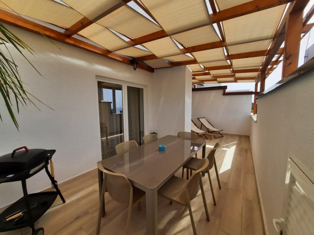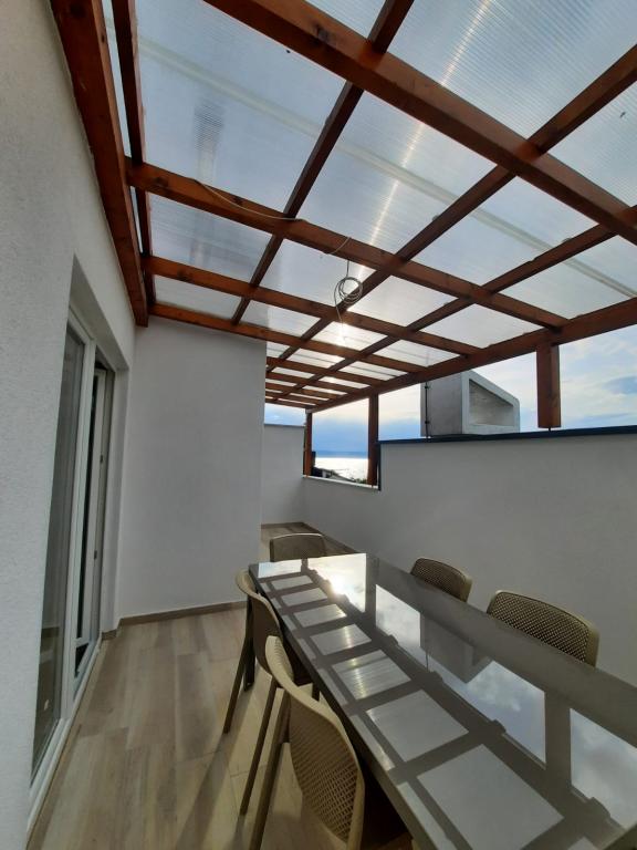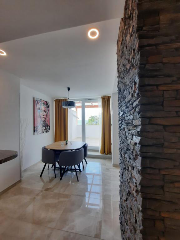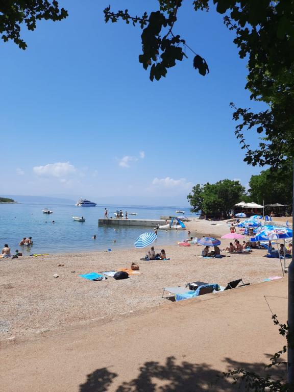The apartment is completely newly decorated with two bedrooms, living room, dining room, bathroom, hallway and terrace overlooking the sea. On the terrace we offer deck chairs, a large table for 6 people and a barbecue. The apartment is located in Kijac, about 1 km away from the center of Njivice. It is equipped with two air conditioners. The sea is only 200 m away.