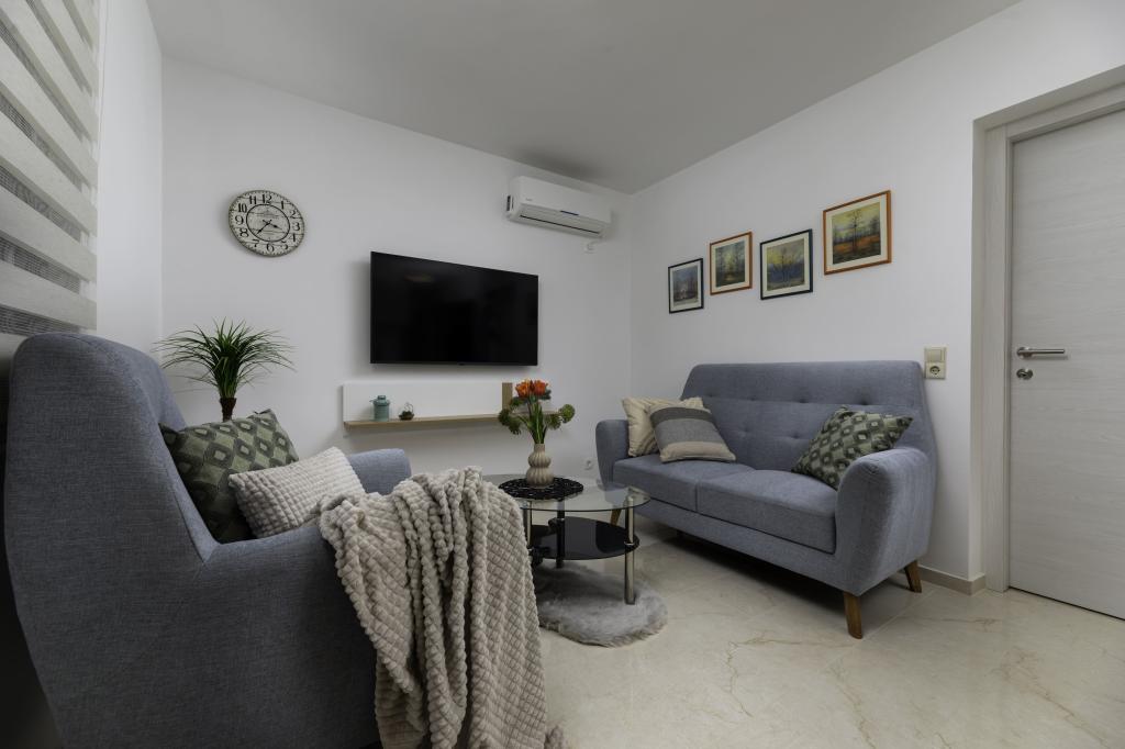 Located in a quiet part of Njivice on the island of Krk, this newly renovated ground floor apartment offers the ideal combination of comfort and a relaxed Mediterranean atmosphere. It is perfect for families or smaller groups who want to enjoy a vacation near the sea with peace and privacy. The apartment has two spacious bedrooms, a modern bathroom and an additional separate toilet. One of the bedrooms has a small room with an extra bed. A fully equipped kitchen and a cozy living room provide everything for a relaxed stay. A special advantage is the covered terrace surrounded by greenery, ideal for morning coffee, a family meal or evening relaxation. Guests have access to air conditioning, Wi-Fi, private parking, an outdoor shower and a barbecue. The beach is only 600 meters away, and nearby there are restaurants, shops and all the necessary amenities for a carefree vacation. Enjoy the crystal clear sea, walks along the coast and the authentic island atmosphere that provides the perfect balance between rest and activity.