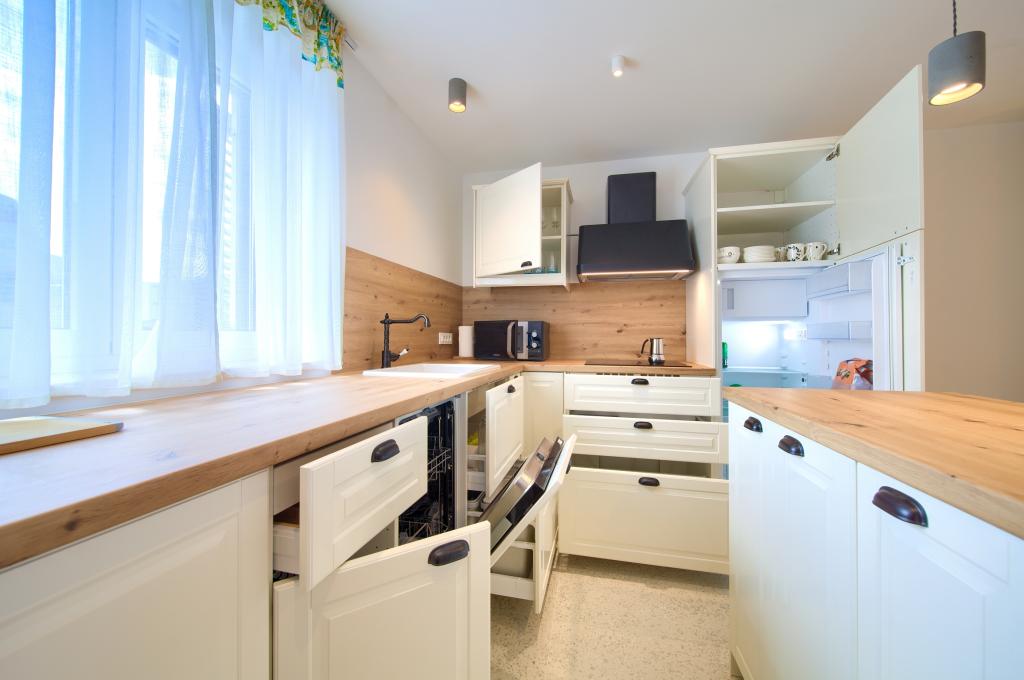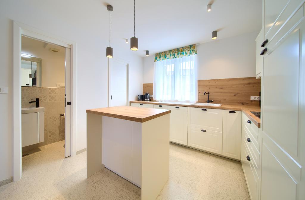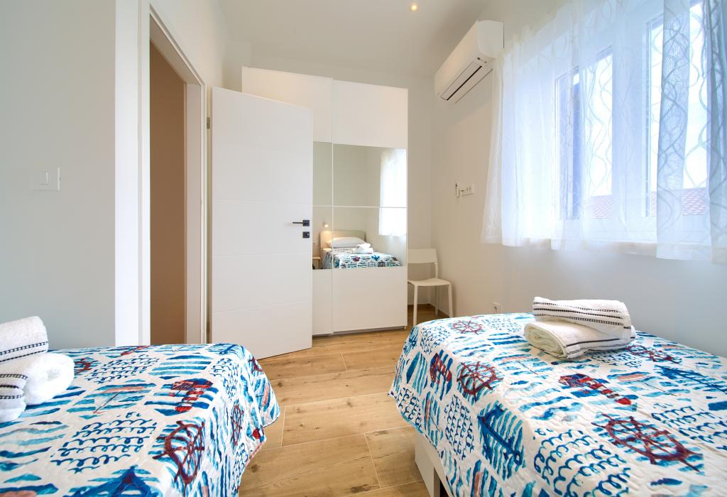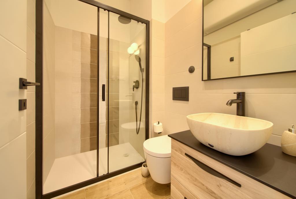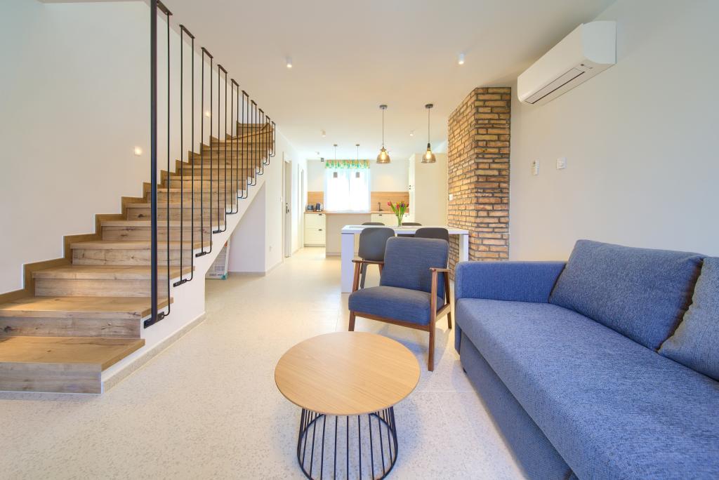 Modernly equipped apartments in a quiet area, located in the center of the town. The apartment is two-story, on the first floor there are bedrooms, each with its own bathroom. On the ground floor there is a spacious kitchen with a living room and a small toilet. The property is located a 2-minute walk from the beach, shops and the center.