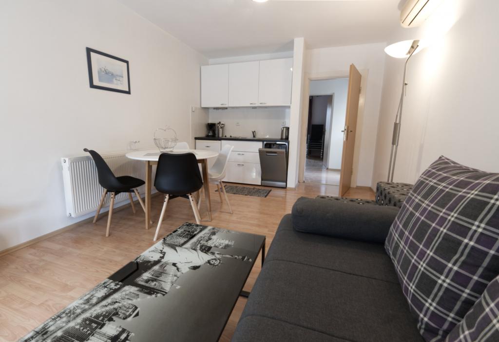 Modern apartments are located in the small fishing village of Njivice, on the island of Krk. Njivice is only 11 km from Rijeka Airport. The property is located a 3-minute walk from the town center and beautiful pebble beaches where you can relax and enjoy the sun and sea. The place is ideal for families with small children and people who want to enjoy the fresh air. The apartments consist of one bedroom, bathroom, spacious living room with kitchen and dining room, balcony and a beautiful spacious terrace which is ideal for morning coffee, and also for evening enjoyment while the fresh air comes from the forest. Thanks to the sofa bed in the living room, it allows accommodation for two additional people. The studio consists of a living room with a bed, dining room and separate kitchen, separate bathroom, and a small covered terrace in front of the entrance (20m2).