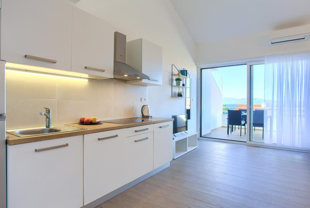Apartments Meri are located in the family house which is located in the center of Njivice. The position of the house is outstanding, next to the sea and 50 meters from the beach and very close to all necessary facilities (shops, restaurants, pharmacy, doctor, sports activities, etc.). The apartments are renovated in 2017. g. Each apartment has a terrace where you can relax and enjoy the peace. Both terraces are connected with a garden that is planted with mediterranean plants. Parking is located directly next to the apartments.