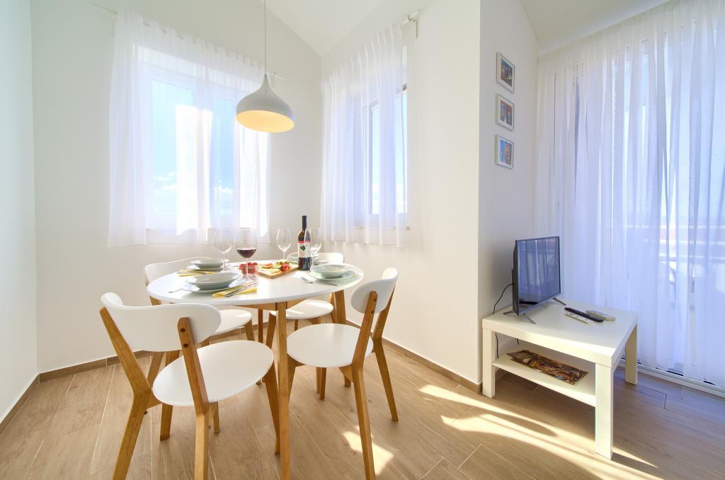 We stayed 12 days in the downstairs studio. Very spacious, clean, equipped with all comforts, tastefully furnished in a modern style. There is also a spacious veranda where you can have meals and hang out. Towels and sheets are available for changing. Free parking just outside the apartment. Enviable position, a stone's throw from the center and the sea. Katarina, her husband and mother are exquisite people, always helpful and kind, plus they speak Italian. We stayed with our 5 month old baby and we enjoyed it very much, thanks to the large spaces and the convenient location. I recommend Apartaments Meri for your holidays in Njivice