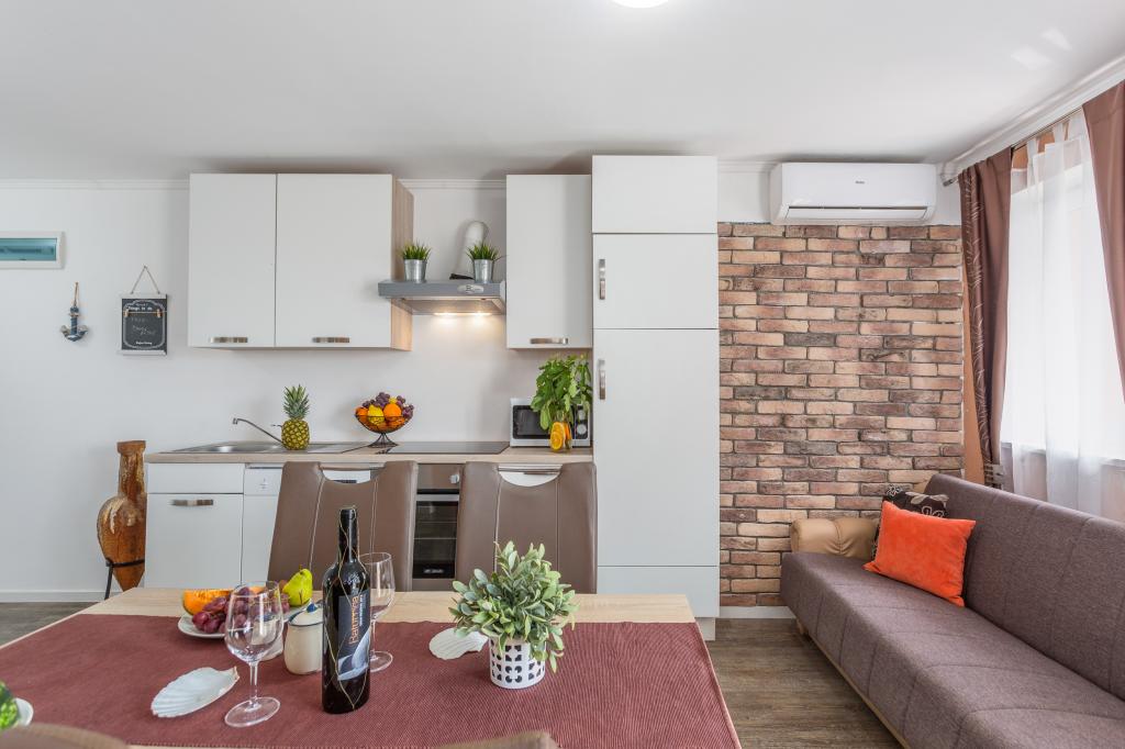 Residential tax is included in price. Booking confirmation document upon reservationWe came for the first time, took two of the two apartments in the facility and were literally alone in the yard, at the pool, hanging out by the barbecue with a beautiful view of the sea. The beach is a minute's walk away. The apartment is clean, tidy, equipped, comfortable. The hosts were friendly, we received shrimp for dinner as a surprise. In any case, more than expected and all recommendations.