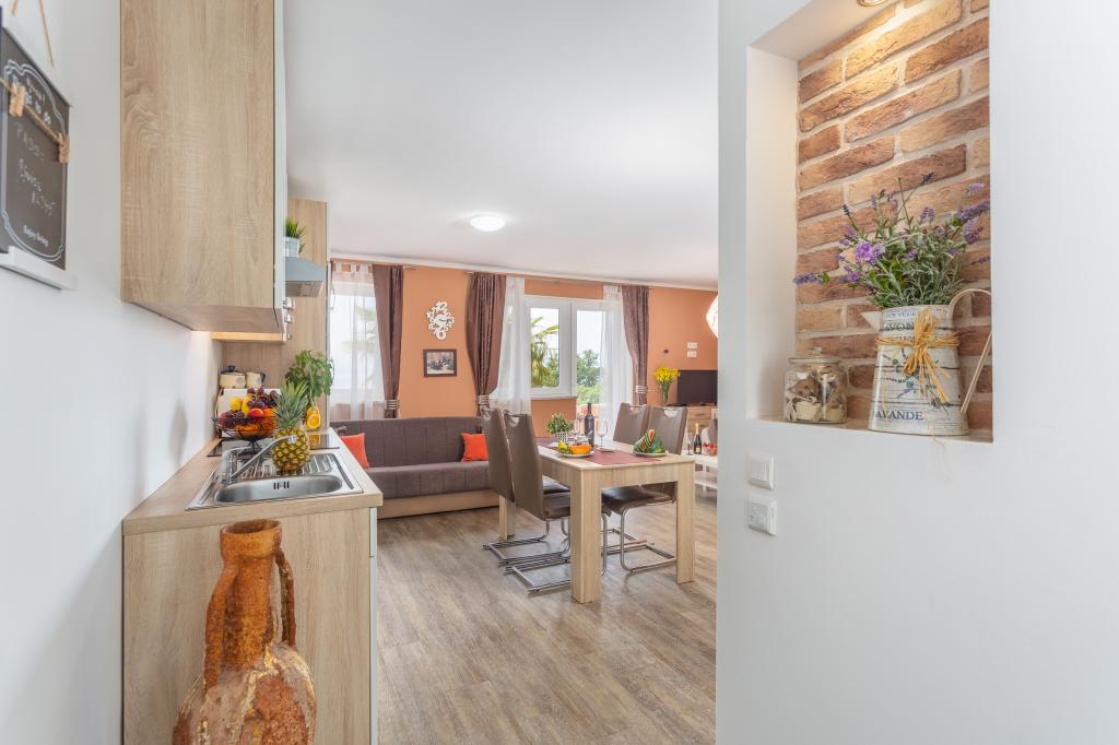 Kind hosts who welcomed us with a chilled app after the heat of the trip, with cold drinks in the fridge and sweets, which was great for the kids. The apartment is beautifully decorated, the bedding and towels smell good, everything is clean. The yard is decorated with flowers, palm trees, mowed grass. With a pool and barbecue that we really used to the fullest with a beautiful view of the sea and a wonderful sunset. Two minutes to the beach with natural shade adapted for children, a park 10 minutes, a new promenade along the sea to the center of Njivice. The hosts surprised us with dinner and a bottle of wine. In any case, more than expected. A wonderfully spent vacation and a place we will definitely return to.