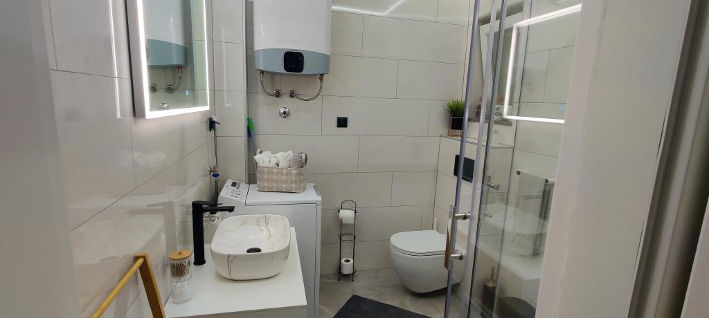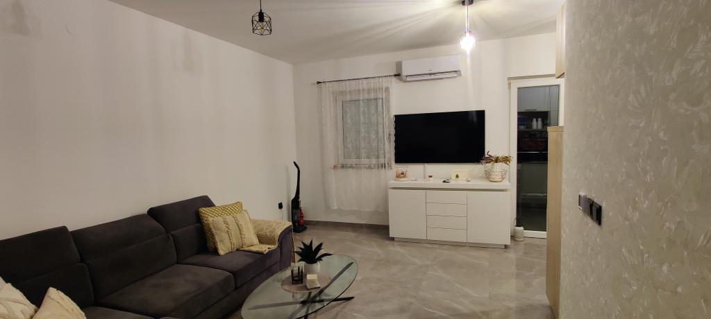 Newly decorated apartment in Novalja on the island of Pag. The island is connected by a bridge. It is located on the 1st floor of a residential building. The apartment has a parking space. The apartment is equipped with air conditioning, free WiFi, Dolce Gusto coffee machine, kettle, safe.