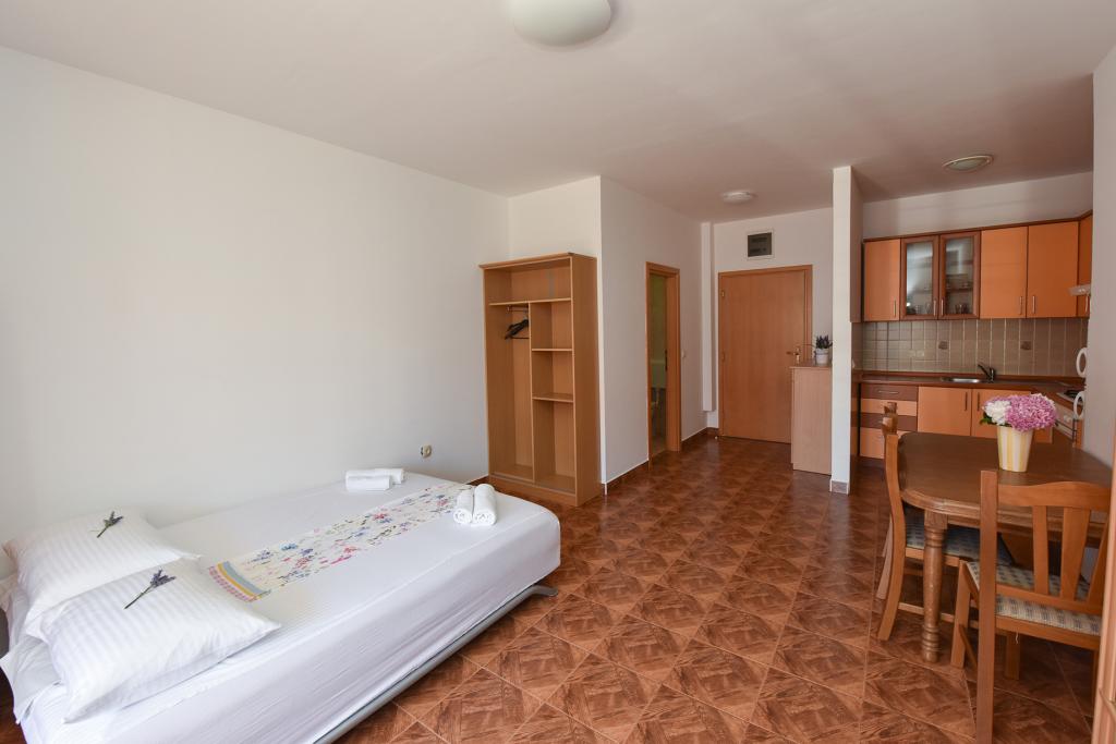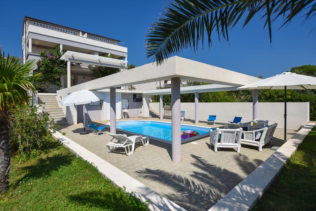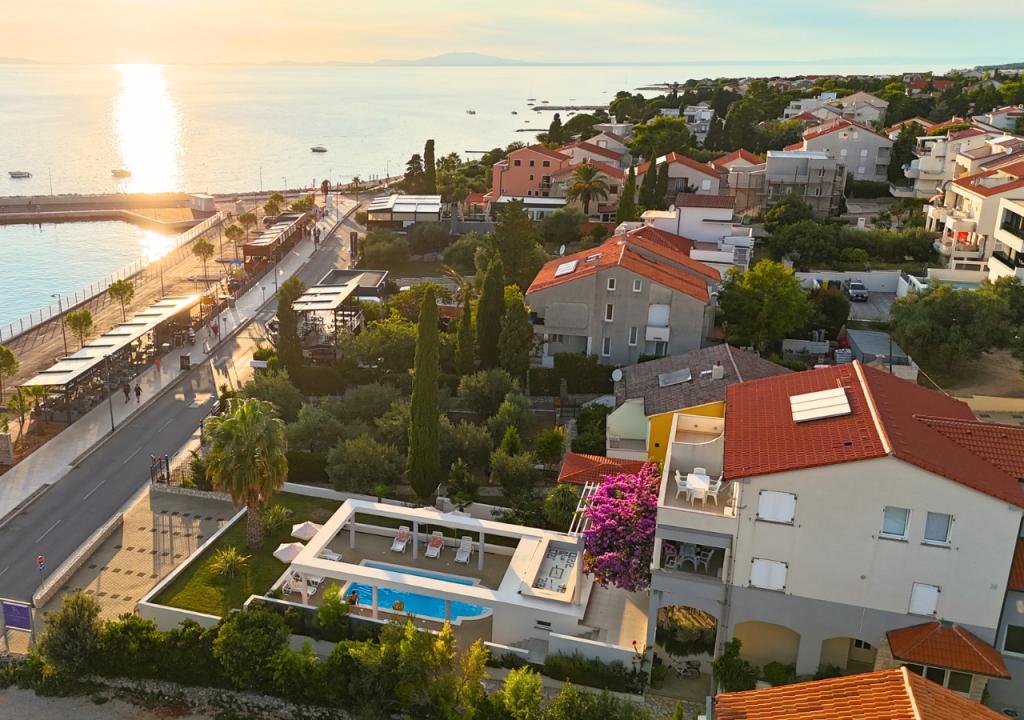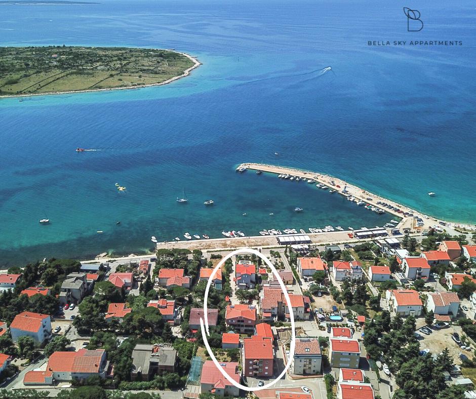 Bella Sky apartments are located not far from the center of Novalja, and consist of 5 houses with a total of 29 apartments. The first house is located right next to the sea, while the other houses are in a row behind the first house. The apartments have a capacity for 2-6 people, are equipped as standard, with a view of the sea, free parking, a swimming pool and a space for socializing and a barbecue in the yard. Near the apartment there are numerous restaurants and cafes, as well as beaches with numerous additional activities.