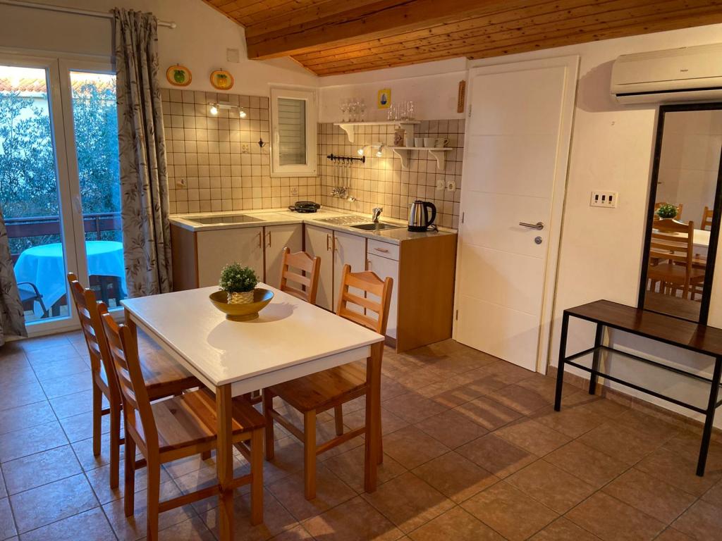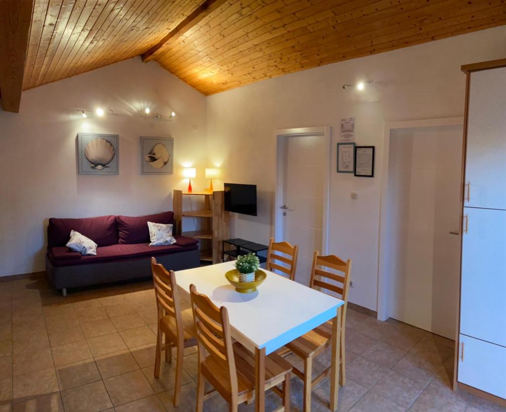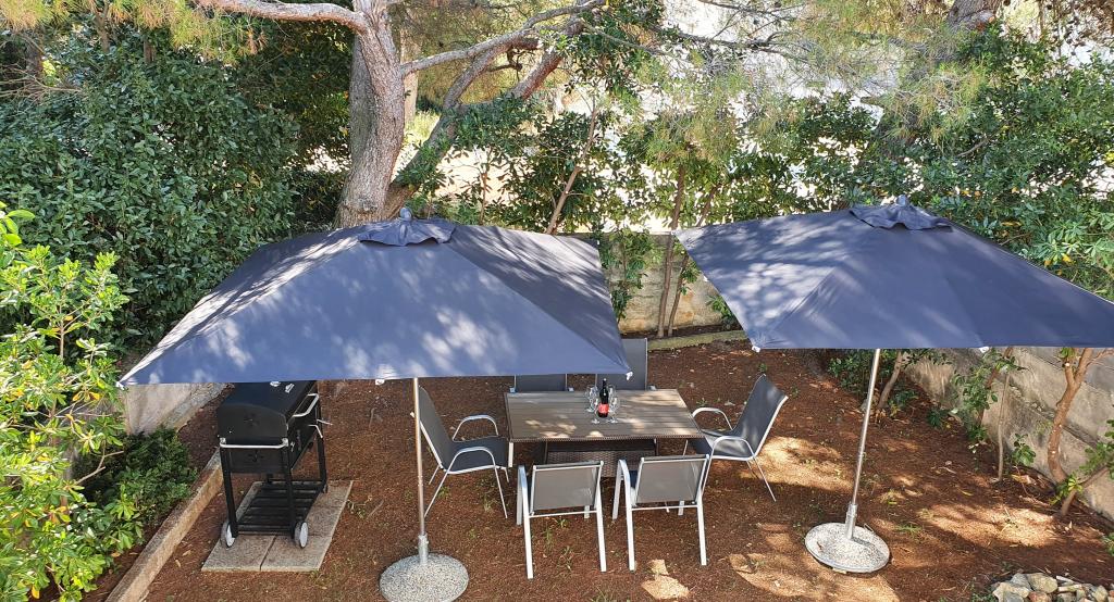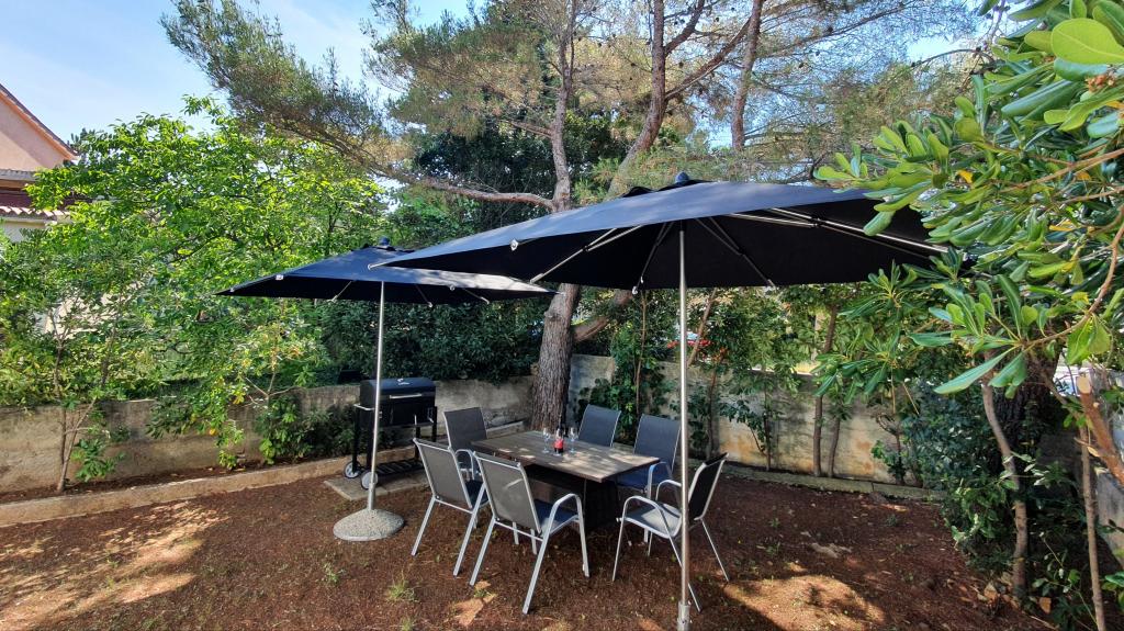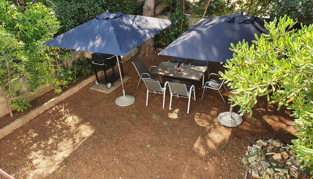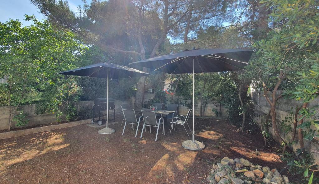 Holiday house with two apartments in a quiet part of Novalja is only 300 m from the center and the city beach. Each apartment can accommodate up to 6 people. The house can be used by one group of up to 12 people. In the yard there is a barbecue, and the shade of pine trees and other greenery makes your stay in this building pleasant and unforgettable. In the immediate vicinity of the house (50 m) there is a tavern Matulo which daily offers Pag lamb on the spit and other culinary specialties, and only a few dozen meters towards the center there are other restaurants.