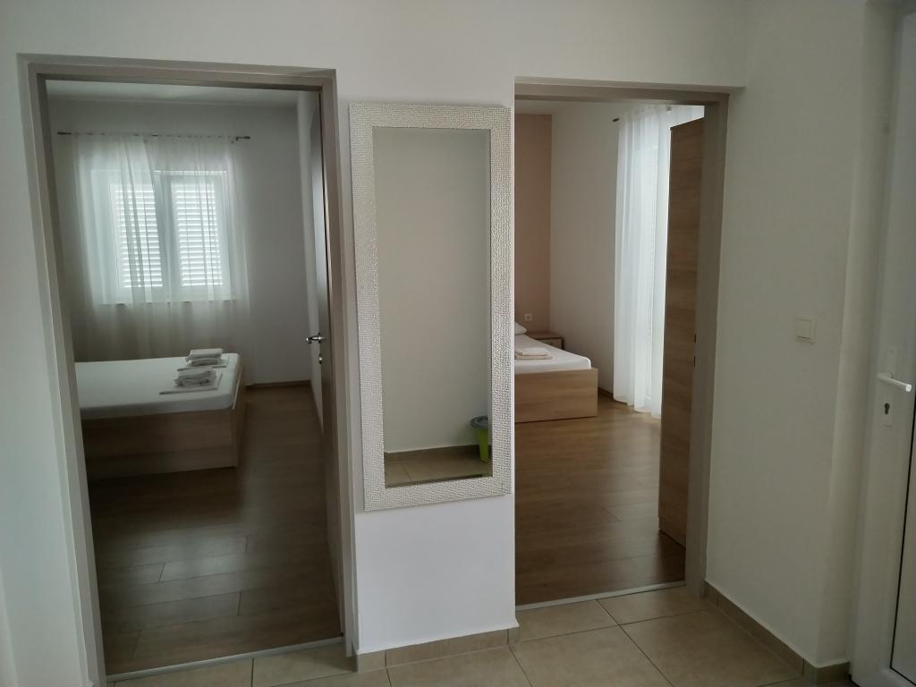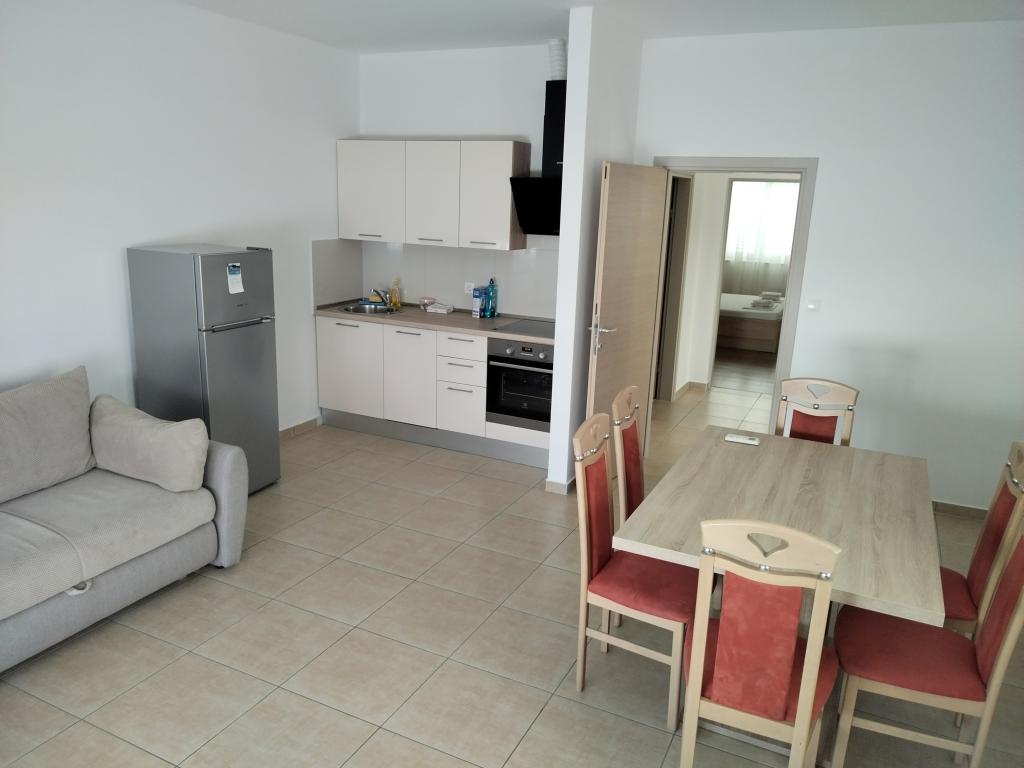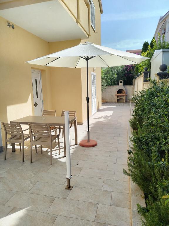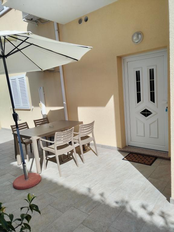 The apartment is located on the ground floor of a private house, has its own entrance, terrace, possibility to use the grill. The apartment consists of two bedrooms, a bathroom and a kitchen with a living room. The apartment is located a 7-minute walk from the center of Novalja, and also about a 6-minute walk from the bus station, health center, shops, and the beach.
