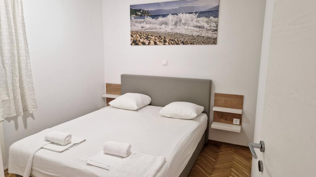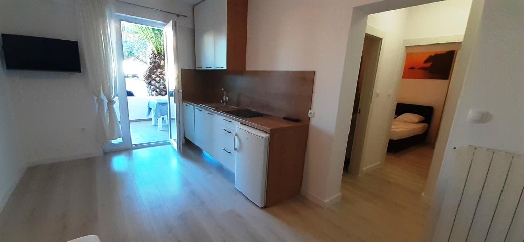 Dear guests, welcome to the website where we present the offer of accommodation in our apartments. Apartments Optima are modernly equipped apartments, completely renovated in 2021. The apartment rooms have hotel-standard beds, and the kitchens are fully equipped with complete kitchen utensils. The apartments have secured parking, Wi-Fi, TV, air conditioning, and the standard equipment includes towels and bed linen. The apartments are located a 5-minute walk from the center and the beach. There are shops and restaurants near the building, and the apartments are 500 m from the center of Novalja.