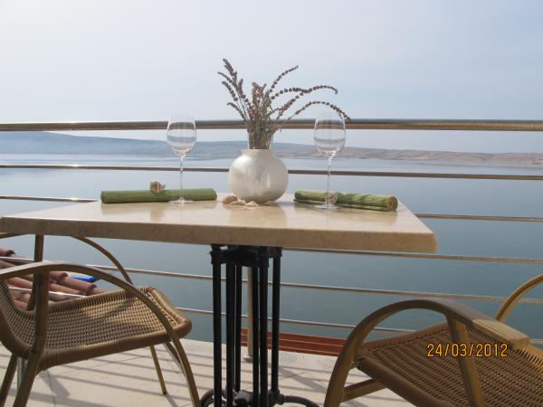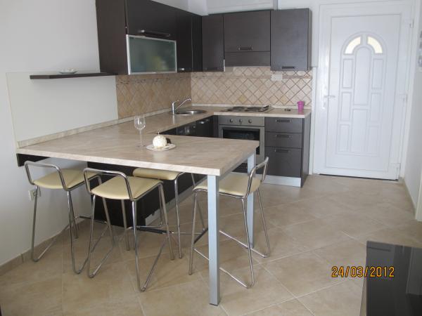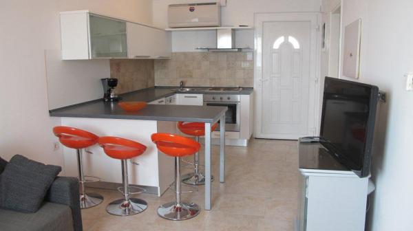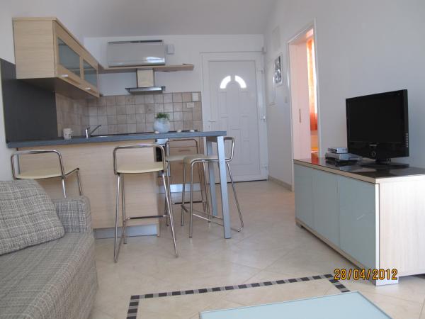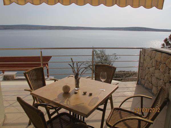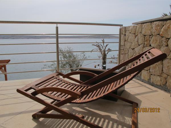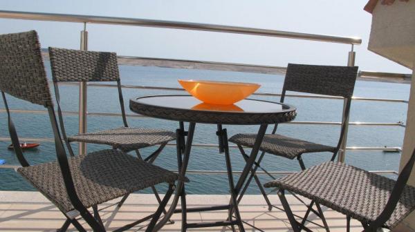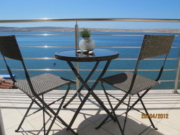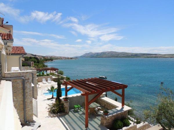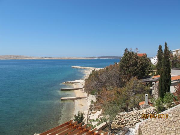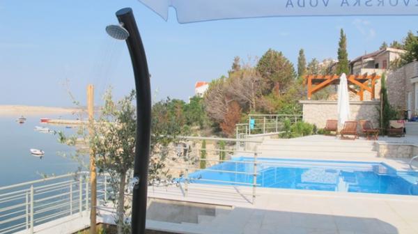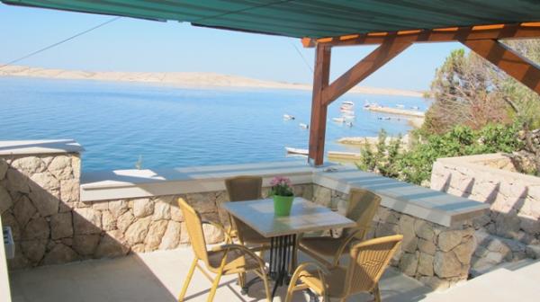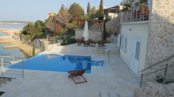 Apartments with pool next to mora.Svim guests have a grill in the backyard with outdoor furniture, pool with deck chairs, beach chairs, games room, fitness and mini wireless internet.Svaki of 5 apartments with capacity for four people (plus extra bed in the living room) and consists of two rooms with bathroom, one bedroom has a French bed, while the other has 2 single beds. The living room has a sofa and a television with satellite. The kitchen is fully equipped with bar, table and chairs polubarskim. Two apartments (4 and 5) have large balconies with seating for 4 people and chairs, and 3 apartments have small balconies in the rooms (1,2,3) with seating for 2 osobe.Posteljina (changed every 7 days), towels (each 3 days), tea towels and taxes are included in the price. Each apartment has a reserved parking spot in the yard. Shop for bread is just 200 yards while the market in Novalja 4 km away. Guests can use the berth in front of the house.