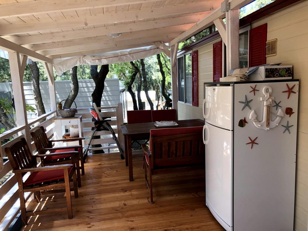 Mobile homes are located in the Strasko camp, which is spread over 57 ha of Dalmatian oak and olive forest and is thus one of the largest and leading campsites on the Adriatic and in Croatia. Camp Strasko is an ideal destination for a family vacation in Croatia, fun, recreation and well-deserved peace during the hot summer days. The house Melda1 is completely renovated this year. 2 separate bedrooms with double beds. Living room with sofa bed and fully equipped kitchen and air conditioning. Outside there are two terraces, one covered and the other, where you can enjoy the shade of Dalmatian oaks. There is room for two cars in addition. The house Melda2 has direct sea views, 2 separate bedrooms with double beds, 2 bathrooms with toilet. Living room with sofa bed and fully equipped kitchen with washing machine, air conditioning and a covered furnished terrace of approximately 35 m2 and a small outdoor kitchen with direct sea views. There is room for one car in addition.