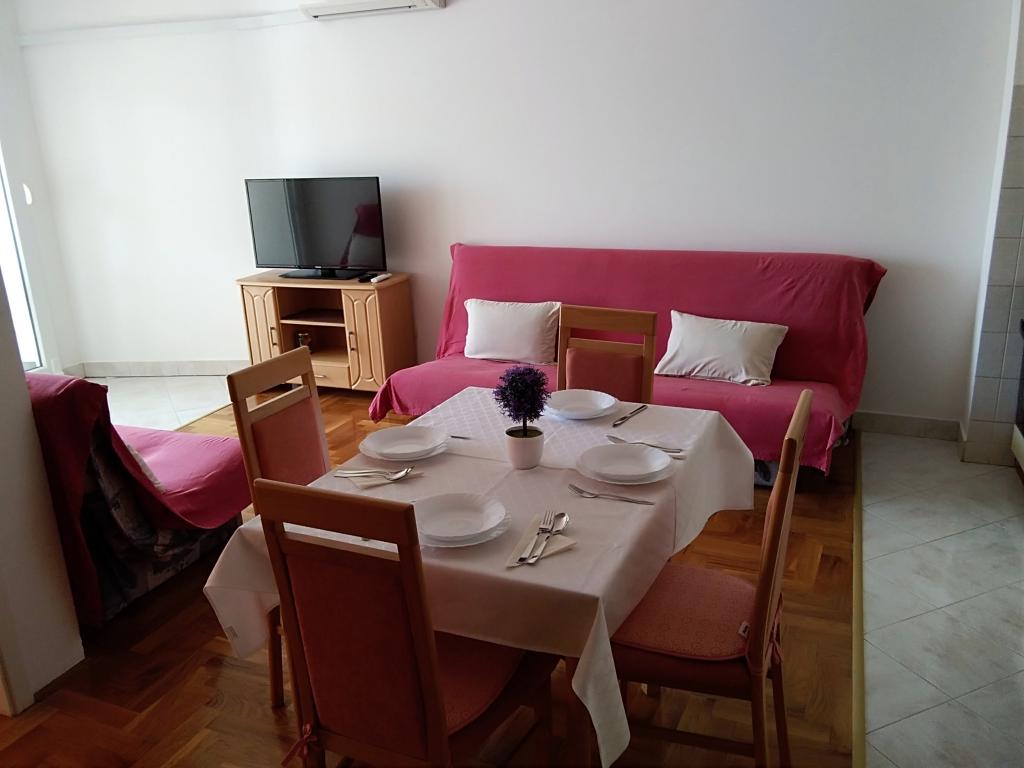 Completely and modernly equipped apartment in a quiet part of Novi Vinodolski, 50m from the beach and promenade. The apartment consists of one bedroom, living room with extra bed, kitchen, bathroom and terrace overlooking the sea. The apartment is located on the ground floor of the house, surrounded by greenery and a common grill. There is a parking space. The host speaks Deutch I Croatian.