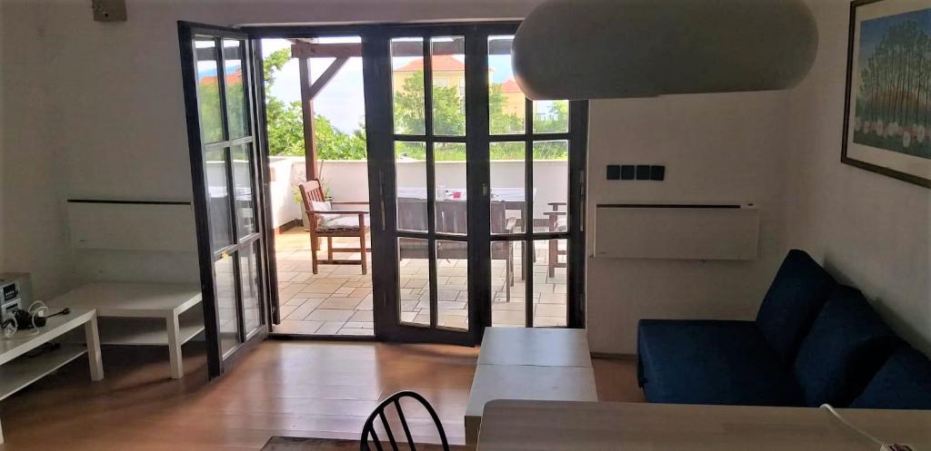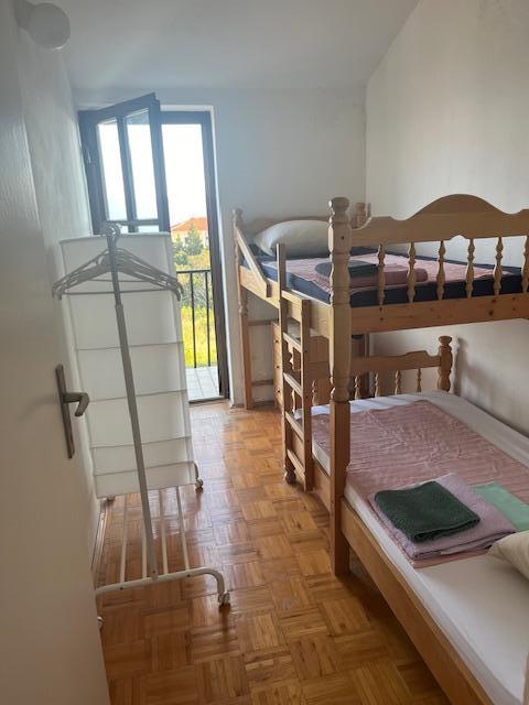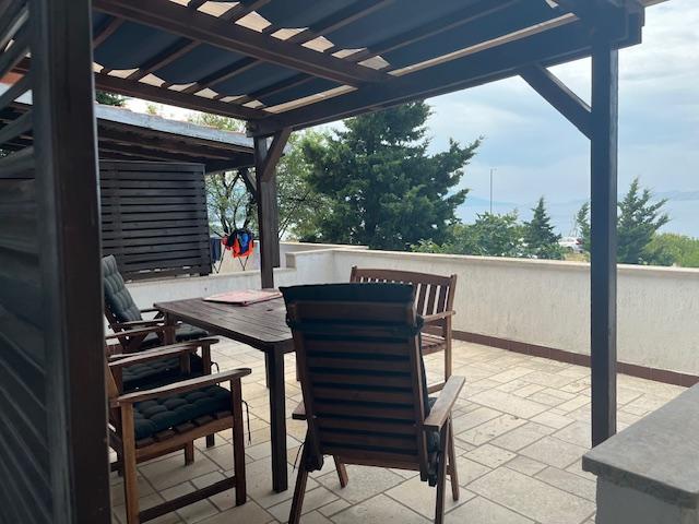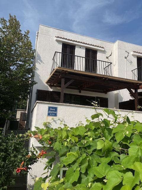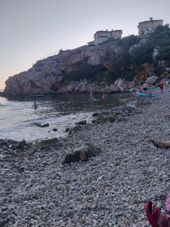 Two-story apartment 70m2 + large terrace 20m2 with sea view. On the lower floor there is a living room with access to the terrace, a kitchen and a toilet. On the upper floor there is a bathroom with a toilet and a shower, three bedrooms (two with a view of the sea and a balcony). Separate entrance, privacy. 3 minutes down the stairs to the beach.