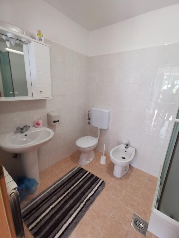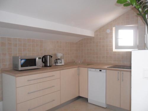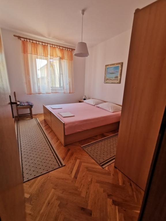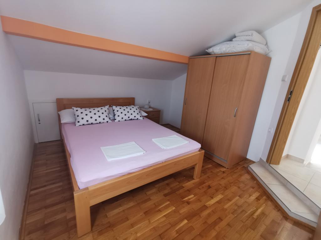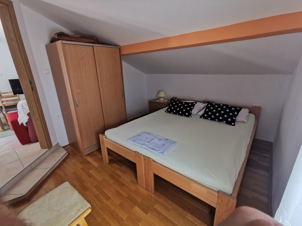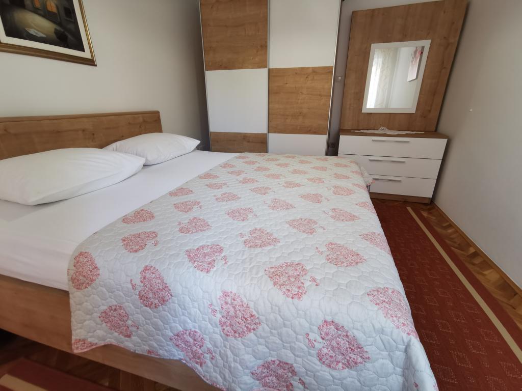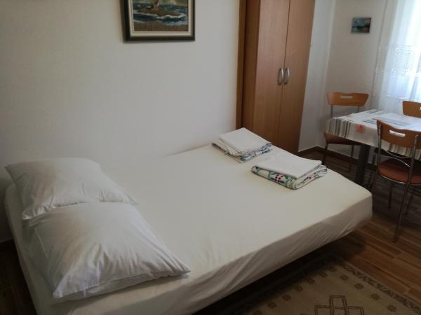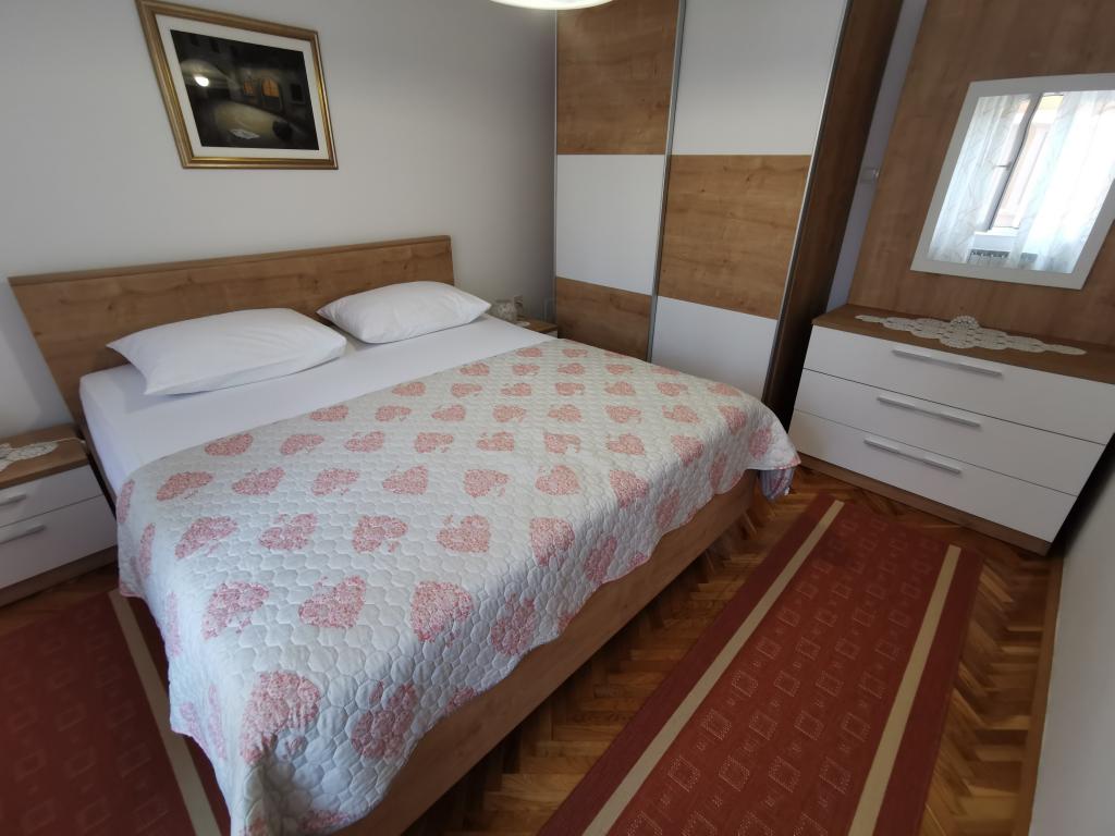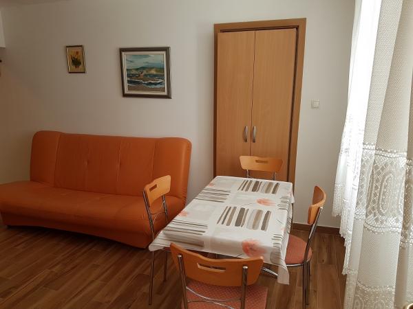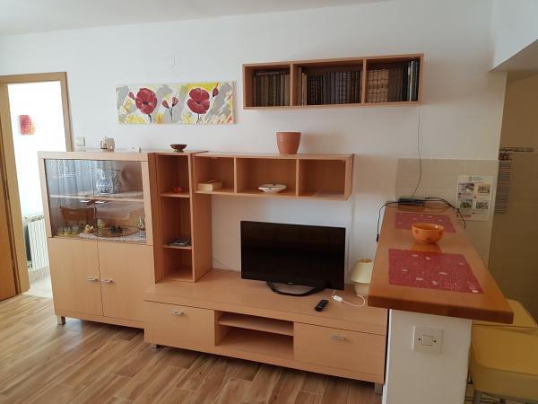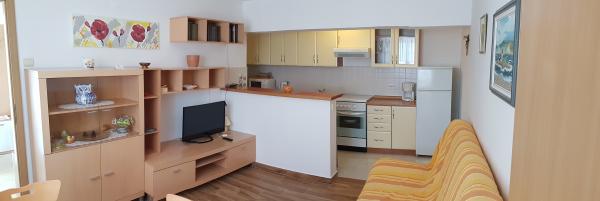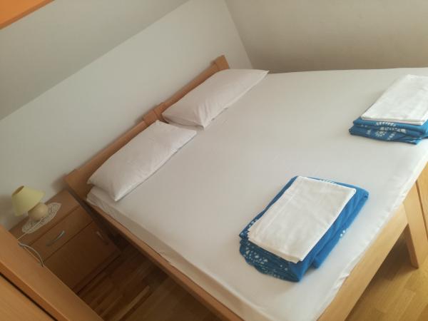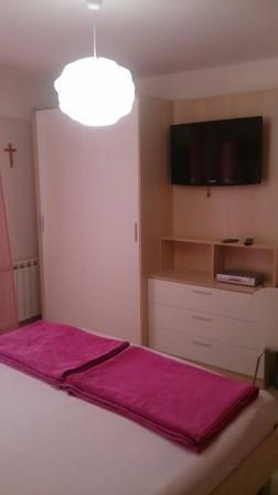App A STUDIO - for 2 people, approx. 20 m2, on the ground floor of a family house with a separate entrance. Double room with kitchen, refrigerator, microwave, satellite TV, bathroom, terrace, air conditioning. App B for 3-5 people with separate entrance, double room, kitchen, refrigerator, microwave, kettle, coffee machine, bathroom, washing machine, balcony, air conditioning. APP C for 3-4 persons, with separate entrance, two-bed room, kitchen, refrigerator, microwave, kettle, coffee machine, bathroom, washing machine, terrace, air conditioning. APP D for 8-10 people. Four double rooms, two extra beds, living room with sofa bed, TV SAT, bathroom with shower, second bathroom with bathtub and washing machine, kitchen with dishes and cutlery, kettle, coffee machine, large refrigerator with freezer, machine for washing dishes, balcony, air conditioning. Apartment E 4 1 is located in the attic (third floor). Two double rooms, bathroom with washing machine, kitchen with living room, TV SAT, dishwasher. Couch in the living room for 1-2 people,