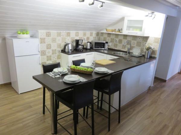 Comfortably and nicely equipped apartments that will satisfy even the most demanding guests, are located in a historic town on the coast of Kvarner. Just a 5-minute walk to the city center where you will find a variety of restaurants, cafes and shops, and 7 minutes to the nearest beach which is just one of a number of different beaches that are offered. The facility is detached and has its own parking lot. Within the property there is a yard where you can spend evenings grilling with your family and friends.