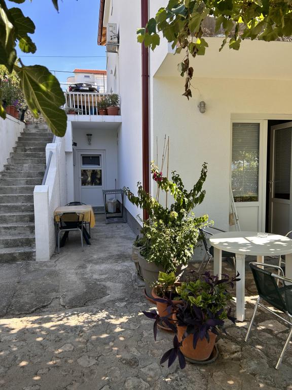 Detached family house overlooking the sea and greenery of a garden in a quiet part of town. The owner lives in the house. The apartments are fully equipped. Located third row to the sea, 5 minutes walk down a hill, 10 minutes walk to the center. Excellent access by car, parking within the grounds of the courtyard. Each apartment has a separate entrance, a balcony or a terrace and a garden set. These prices are not fixed. Depending on the period of the season, the number of persons in the apartment and the length of stay in the apartment. There are no hidden costs hidden.
