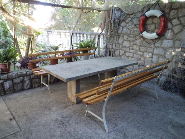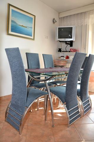 The perfect location of the house and our huge terrace gave us a great view of the sea and the mountain ranges of the island of Krk. An idyllic picture and mood was sparked by the sight of fishing boats slowly floating in the sun on a sunny morning. Quiet surroundings made the rest of the vacation uninterrupted, the pedestrian street and the beach were a pleasant walk away. The apartment is fully equipped, we did not miss anything. Lovely furniture, modern equipment, a wide variety of vessels, well-kept, beautiful Mediterranean courtyard ... like at home! Our hosts were a very cute "little " family, all - from the booking, through the correspondence to the payment - was done in the correct way, all the same as in the photos with so many modifications that the car park was covered. We recommend the apartment to anyone who wants a small company with a home, but not with a domestic view of a room, a house, a terrace! We spent 1 week here with our family and did not mind that we chose this ... even more.