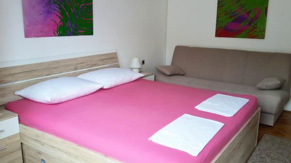 Read more Accommodation unitsRegistration and residence tax are included in the price. The reservation is made by paying an advance payment in the amount of 20% of the total price to the lessor's giro account. The remaining amount is paid upon arrival. Parking and Wi-Fi are included in the price. Surcharge for a pet - 6 euros per day. Arrival after 13:00, and departure by 10:00. The price is increased by 30% per night if the stay lasts less than three nights. NOTE Apartment 1 Surcharge for air conditioning - 6 euros per day (1 air conditioner). Apartment 2 Surcharge for air conditioning - 12 euros per day (3 air conditioners) or 6 euros per day (one air conditioner)