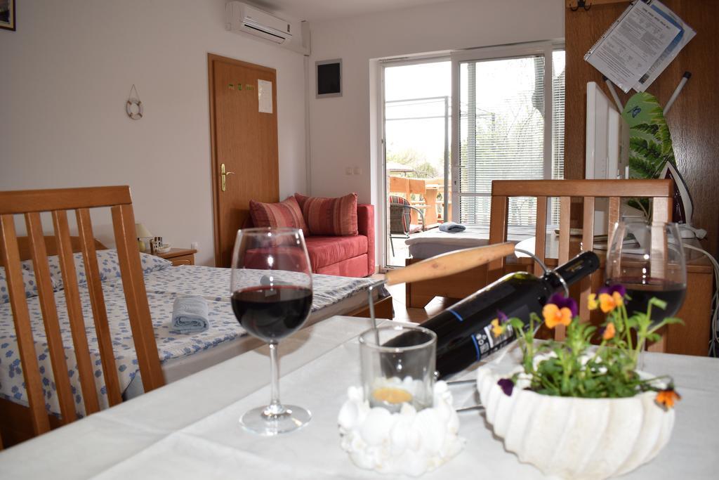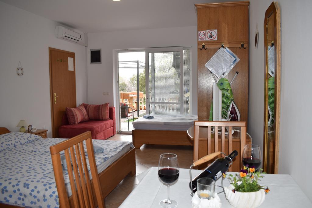 Before we decided to book, we were skleptični because the image is always deceiving. Quite a few times we were deciding whether to choose this apartment. However, we are able to decide quickly because time is approaching our leave. Upon arrival we were greeted by Mrs. Ana, very friendly, pleasant and hospitable. Although we stayed in a studio apartment (four people) we had found everything we poterbovali. The apartment is very orderly and clean, as well as its surroundings. Located in the perfect location. Within five minutes walk you have everything: beach, town center, shops, pharmacy ... Opposite the apartment across the street is a bakery and a pizzeria. Furthermore, it is another great thing: free parking on the premises of the apartment. We had a great holiday. We enjoyed a peak. Thank you, Mrs Ani and her puppies GOLDY to us with the daily visit to brighten the day :))))) We recommend to all, especially families with children.