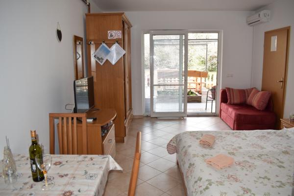 Read more Accommodation unitsResidential and Tourist tax is included in the price. As confirmation of the reservation is required to pay 20% of the amount. The remaining amount is to be paid immediately upon arrival. Deposit bail in case of lost keys or damage in the apartment for studio apartments is € 100 for a large apartment € 150 before heading back to the guest if there was no damage. Arrival time is from 14h - 21h. (Please be sure to give us no. Cell phone and tell us the day before approximately let the scheduled arrival time and if you can not get to 21h that you wait). Departure time is in the morning between 9am-10am.
