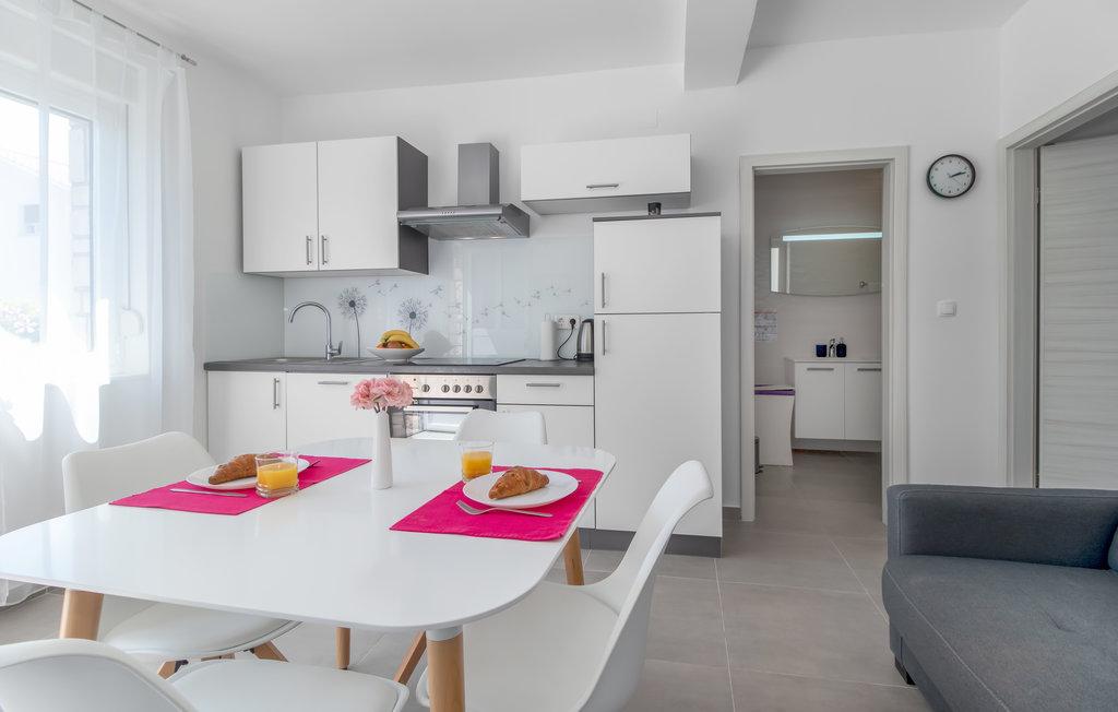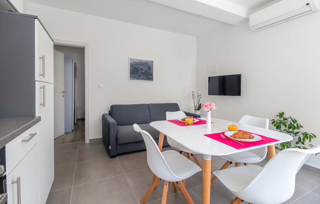 View from the terrace cut out, sea to the distance and screen two large houses. The interior is clean to the eye but the chairs are dirty, the sofa as well and the worst the constant stench from the sewer which you feel non-stop even after washing the whole apartment. We haven't experienced anything worse in 15 years of going to Croatia. Majutel measured, he was only interested in money !!!