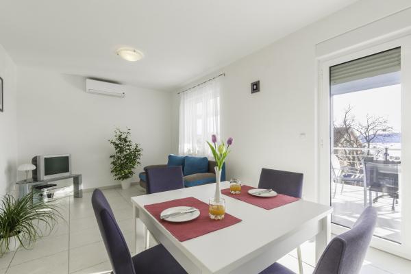 Beautiful, bright and very clean apartment with an extra large balcony and wonderful views of the Adriatic Sea and the island of Krk. The house and the outdoor areas are in a very well-maintained condition. It would be desirable to have insect protection at least on the bedroom window. We were there for 10 days and felt very comfortable. The landlord is very friendly and tries hard without being intrusive. We hope we manage to book this apartment again.