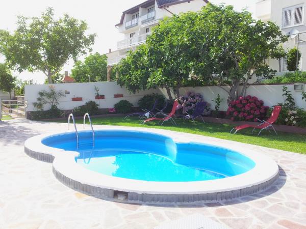 We spent a week here with our dog which was not a problem. Studio apartman is fully equipped, clean, nice, wi-fi. The whole house is clean , well organised, the pool is clean, Beach is really close, but the city center isn't far away by foot either. We had a relaxing time here! Thank you!