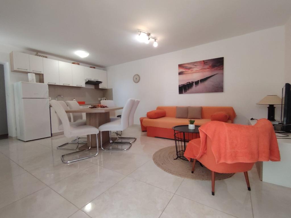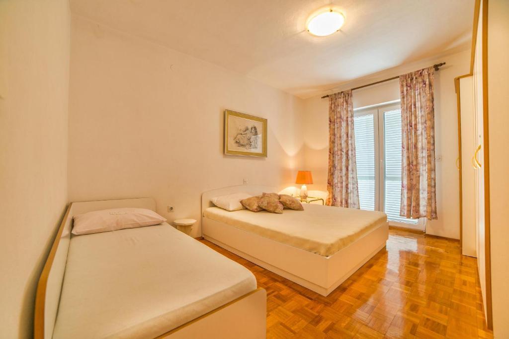 In a family house only 300m from a beautiful pebble beach and many amenities, there are two modernly furnished apartments (6+3, 4+2). On the ground floor there is an apartment with 2 bedrooms, a bathroom and a kitchen with a dining room and a living room. A maximum of 6 people can stay. Pets are welcome. On the second floor there is a spacious three-bedroom apartment with a sea view. A maximum of 9 people can stay. Pets are welcome. At the address 22. lipnja 37, there are 2 apartments 4+1, on the ground floor of the family house. They are 350m from the beach.