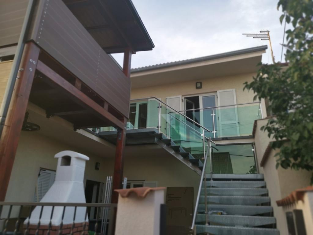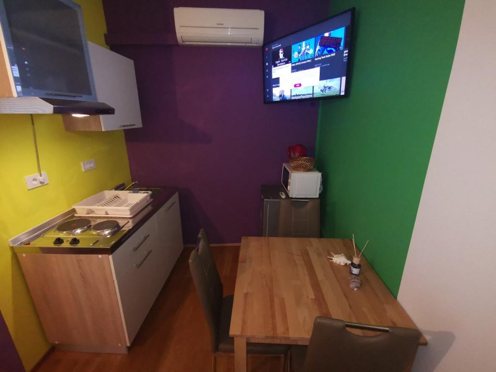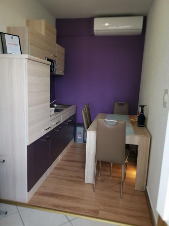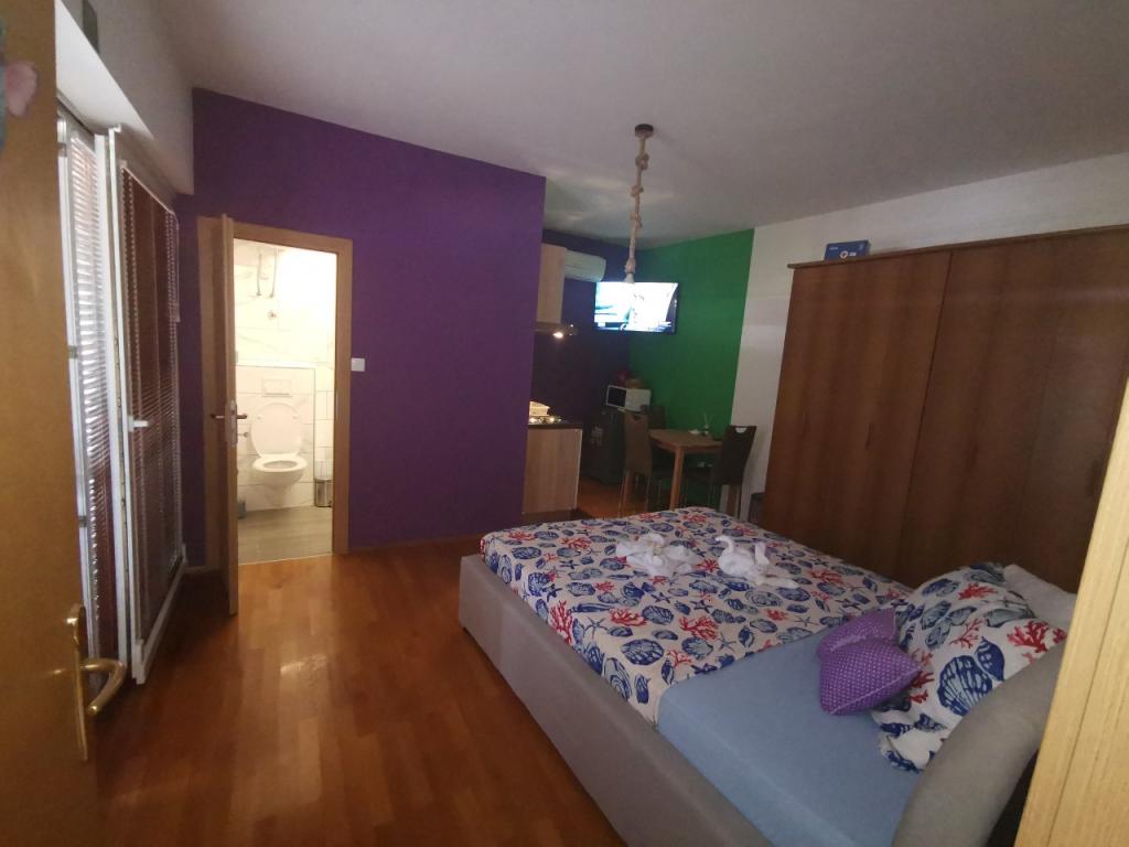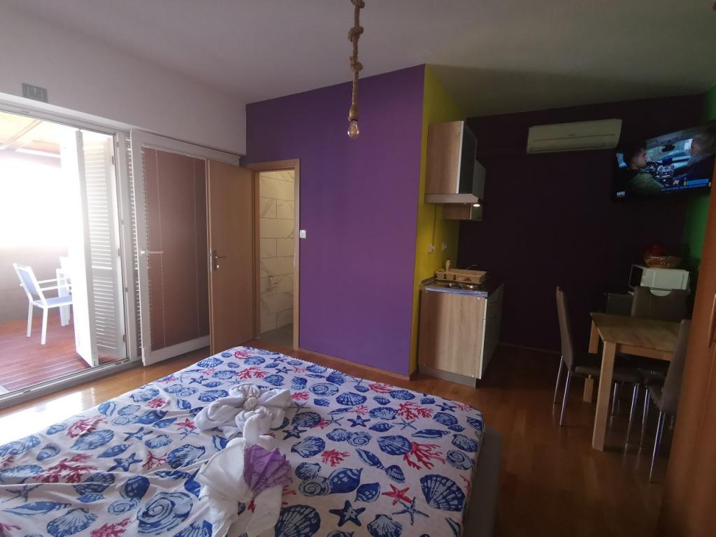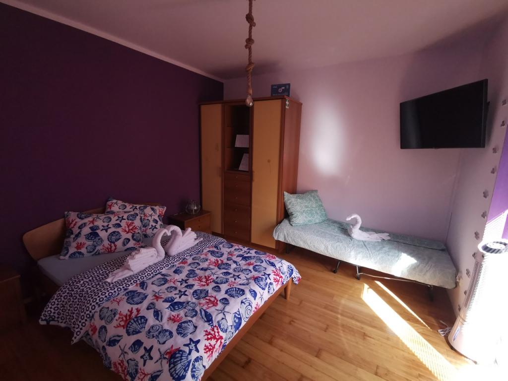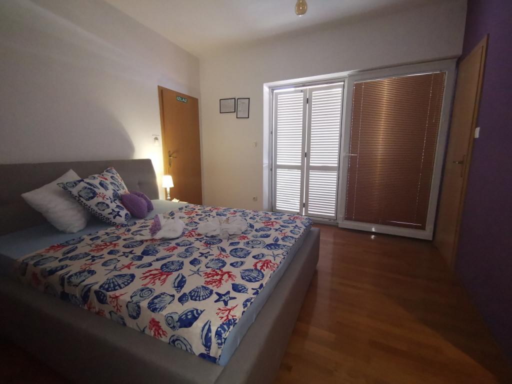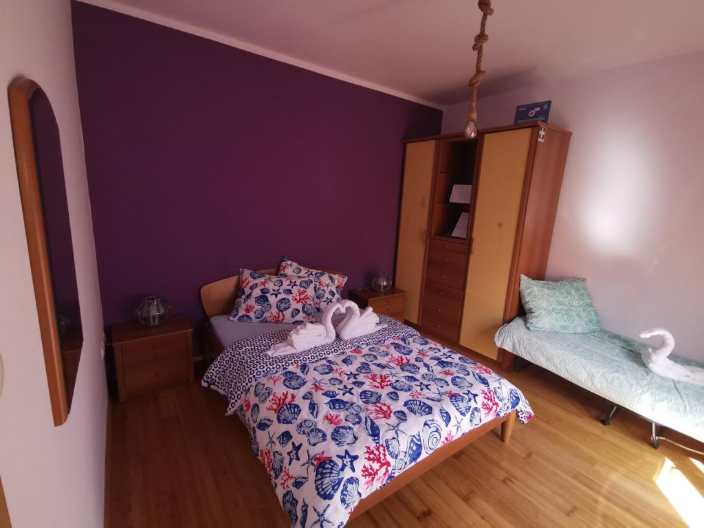 A fully and modernly furnished apartment with 6 beds for rent with the possibility of an additional 2 extra beds with a beautiful sea view, close to all amenities, restaurants, sea and beaches. Ideal for a quiet family holiday. You can choose between sandy and pebble beaches which are 750m away from the apartment. The beaches are made up of a myriad of amenities that are tailored to children of all ages. The apartment consists of bedrooms, bathroom, kitchen and balcony and there is a beautiful terrace overlooking the sea and barbecue. Also each apartment has air conditioning and free internet. We also have a fenced parking lot (150m away from the apartment) which is in the shade, so your tin can be safe during your vacation. The center is just a short walk away so evenings can be filled with various activities.