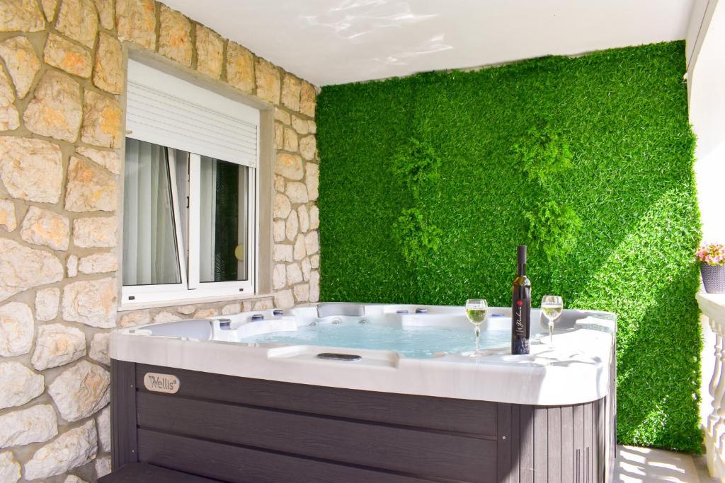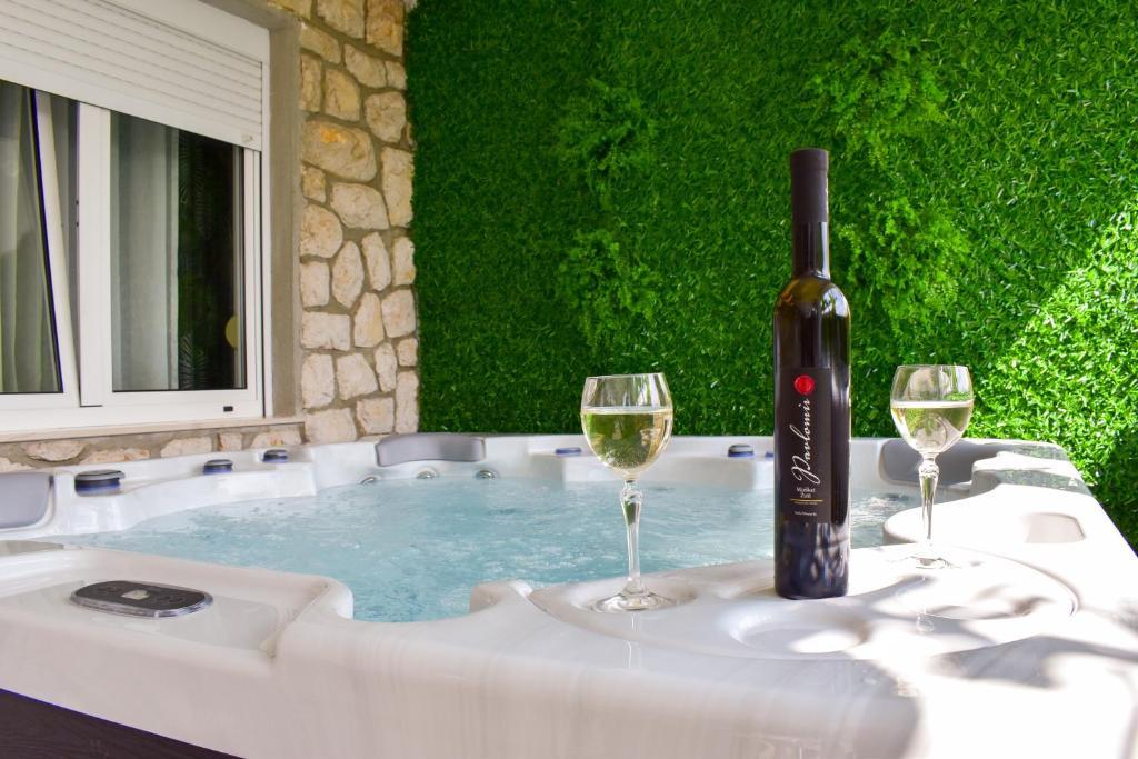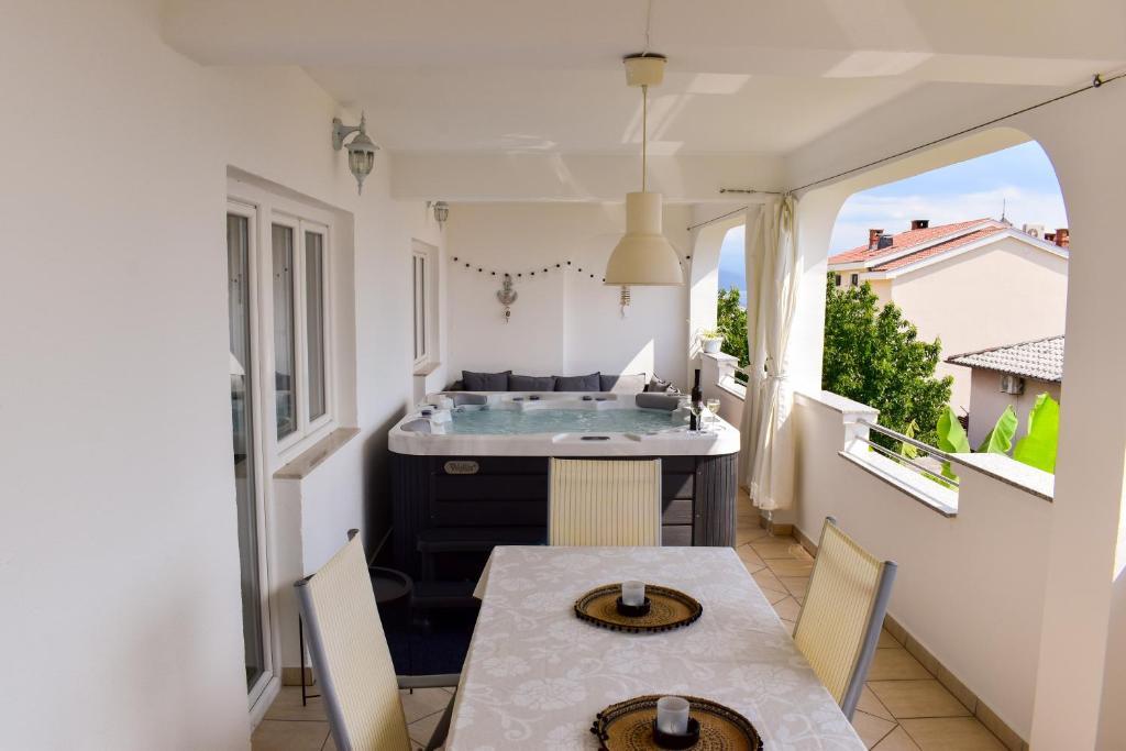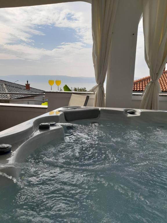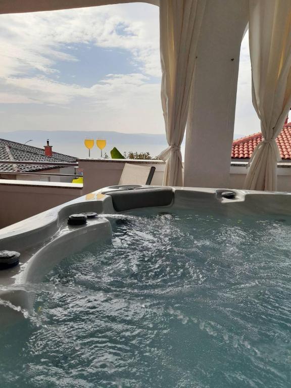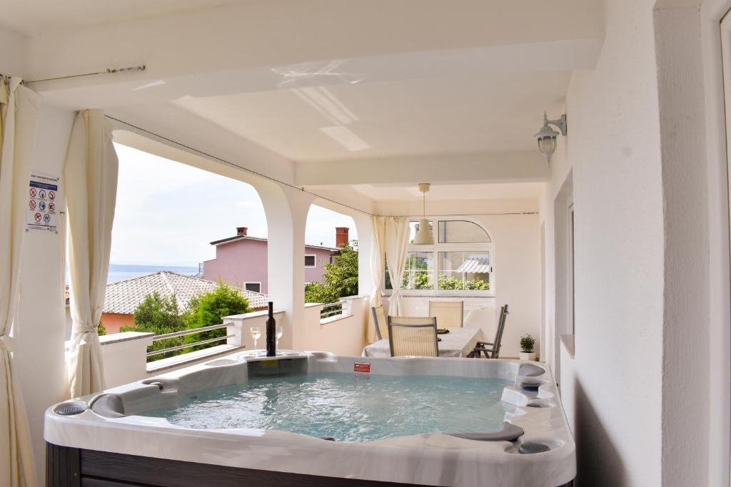 The 4-star Motar Apartments are located in the town of Novi Vinodolski, located in the Kvarner Bay, only 350m from the beach. The property itself has two apartments ideal for vacation and summer enjoyment. The larger apartment (A4) covers an area of 80m2 and has two bedrooms with a large double bed, a kitchen, a living room, two bathrooms with a hairdryer, and a 30m2 terrace with a large hydromassage pool overlooking the sea and islands, while the smaller apartment (A2) has one bedroom with a large double bed, a living room, a kitchen and one bathroom with a hairdryer. The apartment covers an area of 60m2 and also has a 30m2 terrace with a large hydromassage pool overlooking the landscaped garden and lawn. Both apartments have a fully equipped kitchen with an oven, hob, extractor hood, kettle, Nespresso, filter coffee machine, dishwasher, refrigerator and microwave. Both apartments have a safe.