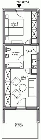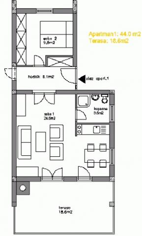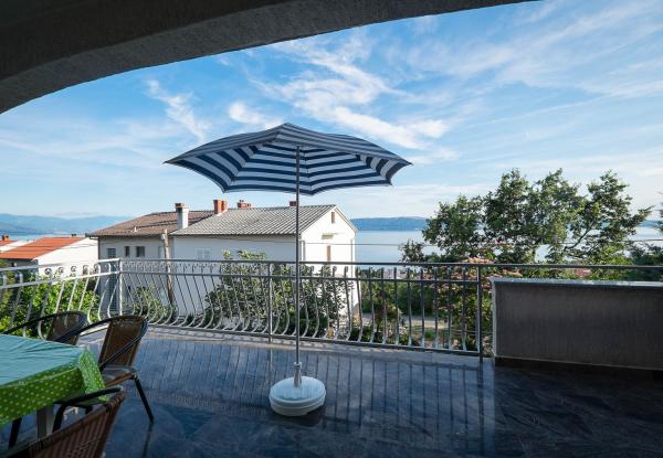 Two-bedroom apartment with a large terrace, in a quiet part of Novi Vinodolski, less than two hours drive from Zagreb. Barbecue negotiated. Note: Apartment 1 and Apartment 2 can connect and share. Ideal for two families!
