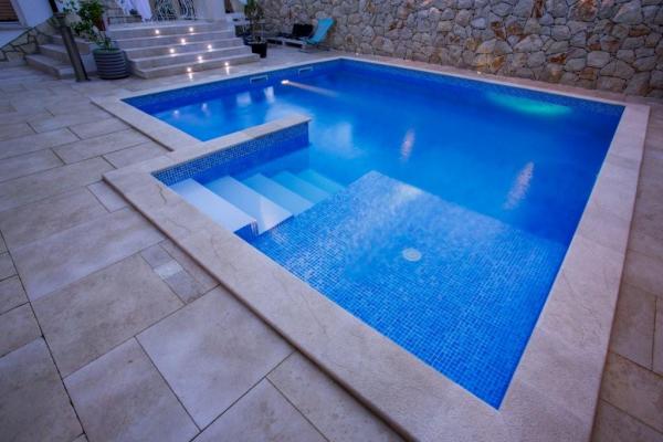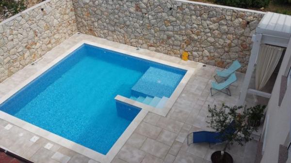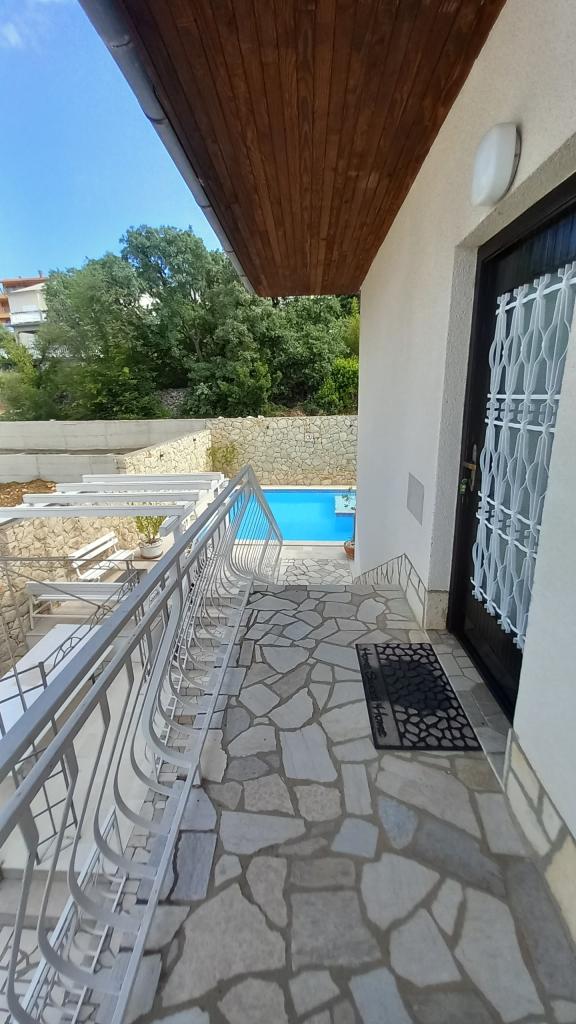 Family Apartments -ŠVOB - with swimming pool; for family vacation with children, grandchildren (family-friendly). We do not accept groups of young people. Swim in the sea and pool, relax with a massage, sauna. The apartments are located in a great location in Novi Vinodolski, approximately 350m from the beach (suitable for children and adults), the Lišanj hotel, park, promenade by the sea and the city center. The apartments are fully equipped. Each apartment has its own entrance, balcony or terrace with a sea view, garden, shared outdoor pool. *We are open from 28.04. - 15.10. (seasonal). - In the house - with swimming pool on offer: 5 family apartments (2 larger and 3 smaller), terraces/grill, 2 outdoor showers, toilet. Parking in front of our house (1 parking space per apartment), WI-FI. *Parties for young people are not allowed! *First min./Last min. PRICE is valid for 2 adults + 2 children