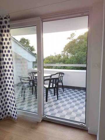 Fully new apartments on the ground floor (above the basement floor) and on the first floor, with separate exterior entrance, in a quiet and green environment. Spacious rooms with panoramic sea views, the island of Krk and Velebit: - one bedroom with a double bed and a living room with pull-out bed 160x200 cm - modernly equipped and spacious bathrooms Kitchen equipment includes: cutlery and cookware, fridge, electric stove, sink, microwave oven (apartment 1) and oven (apartment 2), coffee machine, kettle and dishwasher (apartment 2). Free wi-fi, satellite television and air conditioning. Close to beaches, shops, restaurants and city center. A parking space is provided