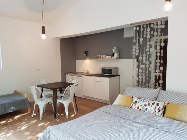 Residential tax is included in price.There really isn’t the slightest flaw. The apartment is beautiful - extremely clean, neat, with lots of light and functional. Beautifully furnished and has really everything you need. The apartment has a space in the garden where it is pleasant to stay all day because of the natural shade. The beautifully landscaped beach is nearby, it is neat and has accompanying facilities. Shops are nearby. And finally, the owners, Mrs. Kristina and Mr. Boris are wonderful people, friendly, accommodating and do everything to make guests feel comfortable and welcome. We will definitely come again.