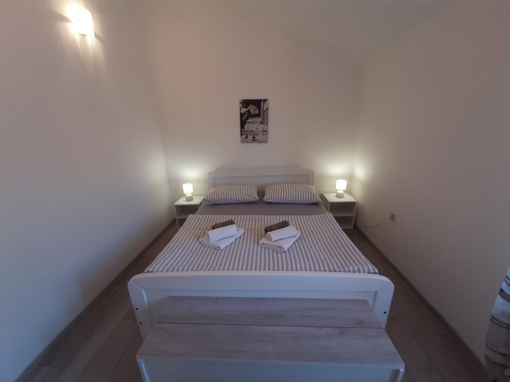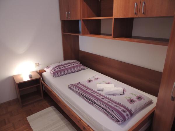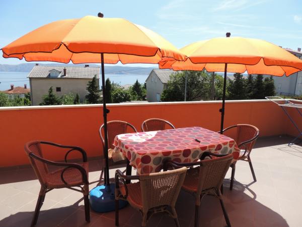 Apartment chose in February 2015 after a long search on the internet. Quickly we gained concrete and factual information of Mr. Daniel which meant that we decided to book a stay. Now, after returning from vacation, we can confidently recommend our apartment all looking for comfort and tranquility. The tastefully decorated apartment is on the first floor of a quiet street. It consists of an entrance hall, two bedrooms with comfortable double beds, one sleeping room with a single bed, a comfortable bathroom and constituting one unit, a large, well-equipped kitchen and an equally large living area with air conditioning, TV, internet access. There is also a spacious terrace overlooking the sea, the island of Krk and on the picturesquely situated on the slopes of the city. Hosts very friendly and caring, they explain everything and show. The nearest beach the street Obala Petra Kresimir IV, about 15 minutes down on foot. You can drive a car. Places to swim on the rocks or pebble beach with a gentle descent to the warm sea (it's at the end of the street). At night you can enjoy a stroll through the old town. Bars, cafes, shops open late. For everyday purchases can market next roundabout. Port and many other attractions. Recommended.