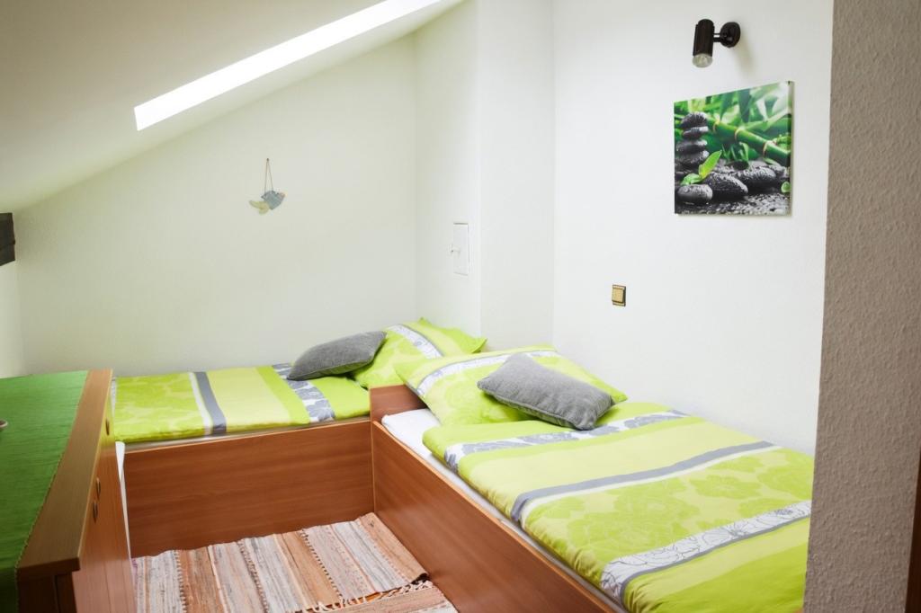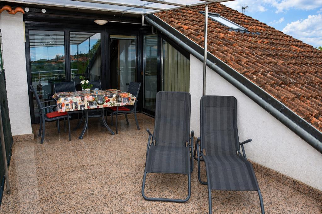 In a quiet location without traffic, there are two cozy apartments, each for up to 4 people. They are surrounded by silence and a relaxed atmosphere, where children can play carefree, and you can enjoy a real vacation away from the everyday hustle and bustle. A special charm is given by the covered terrace with a beautiful view of the sea, from which you can watch magical sunsets every evening. The apartments are located on the 1st and 2nd floors and consist of a kitchen with a living room, a separate bedroom, a bathroom and a terrace with a sea view. They are fully equipped for a comfortable stay - the kitchen has enough dishes and utensils for preparing meals. Guests have access to air conditioning, free Wi-Fi, TV, bed linen, towels and a hairdryer. A parking space is also provided for guests.