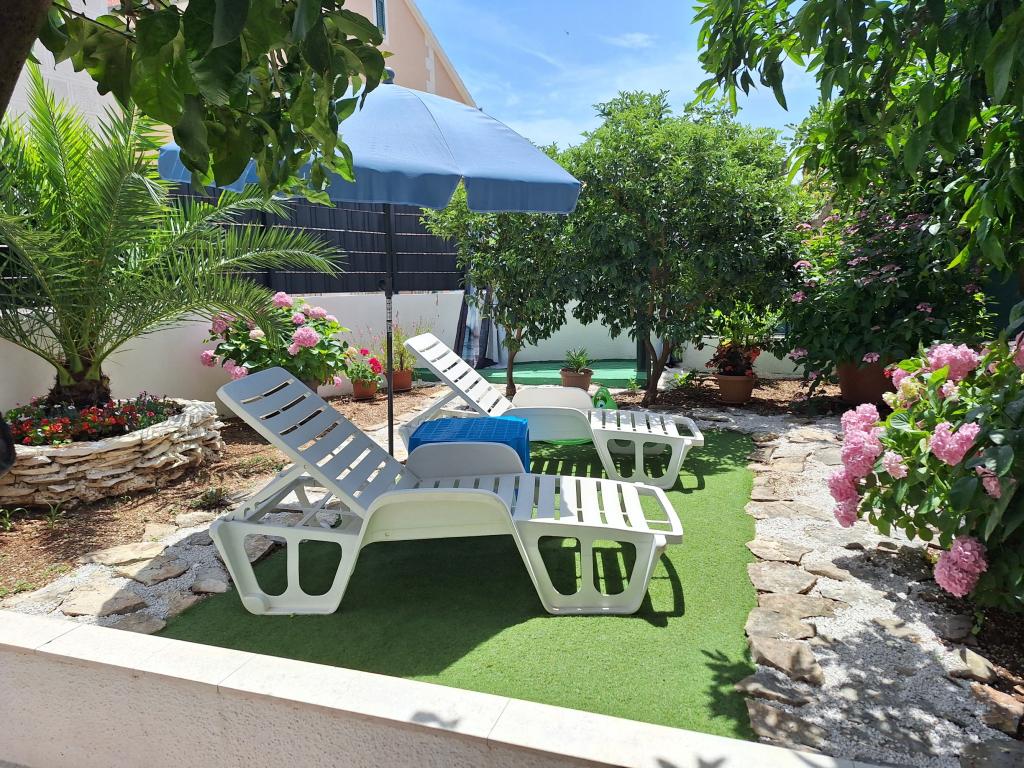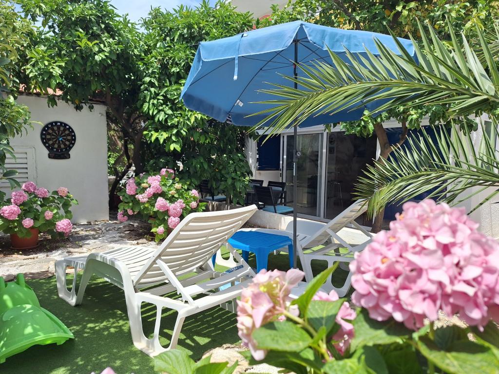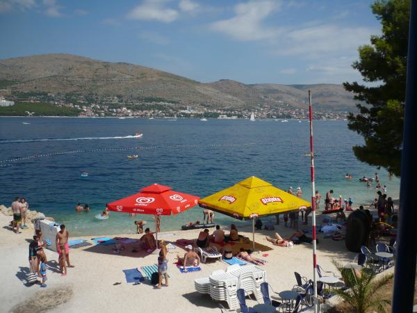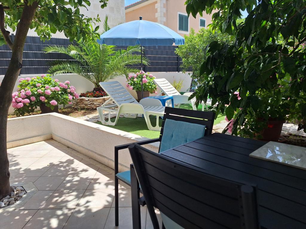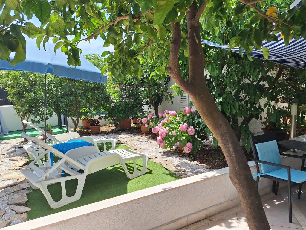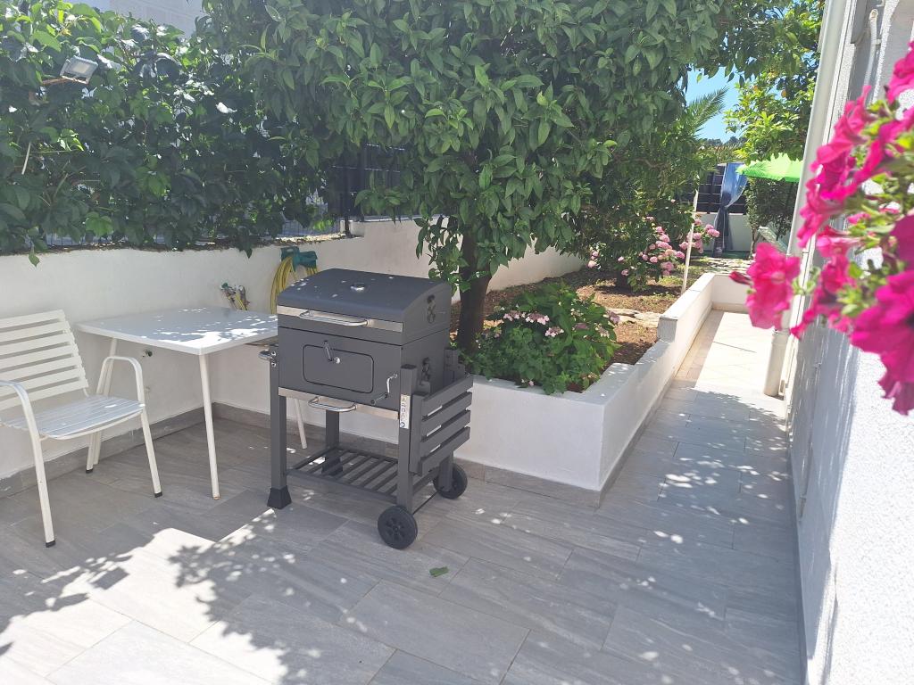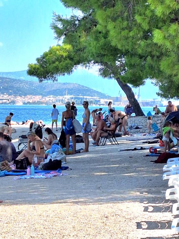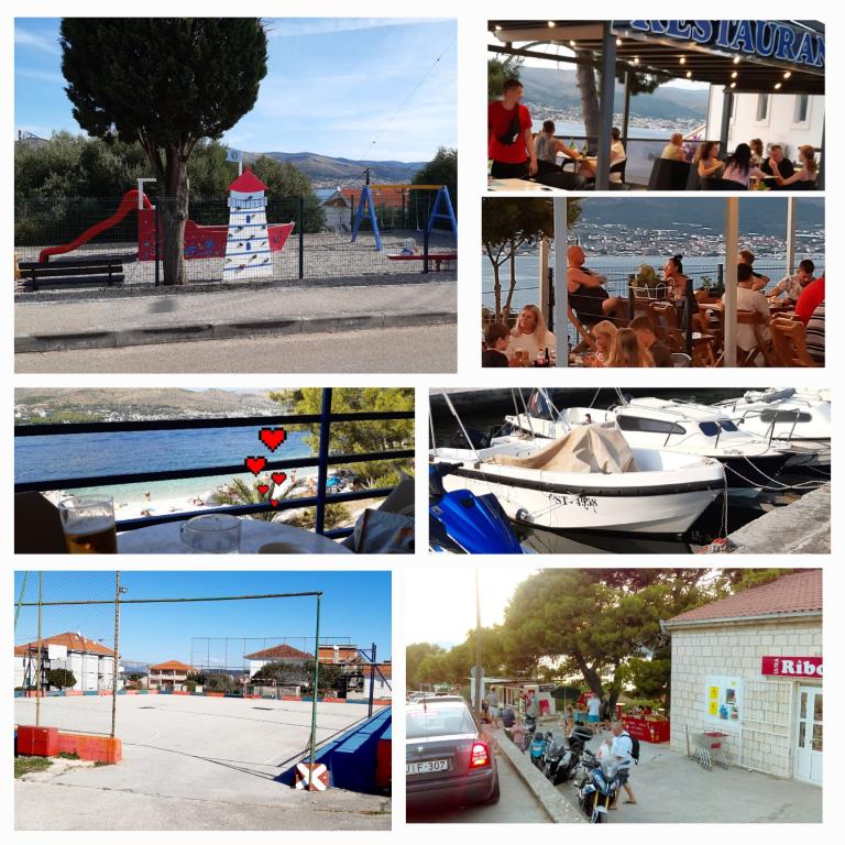Excellently equipped (everything included in the price, as well as the tourist tax), spacious, Apartment Gizella, on the ground floor of a family house, with a terrace, yard and parking, offers a peaceful, relaxing family vacation in the shade of orange, lemon, tangerine trees and a beautiful pine forest, which looms over the crystal clear sea, with the possibility of walking and cycling past olive groves and Mediterranean medicinal herbs. You are the only guests in the facility and you have a separate entrance. Pebble, rocky and concrete beaches, with parking, shops, cafes, restaurants, fast food, children's and sports playgrounds, a bus and an ATM are a five-six minute walk away. At the same time, only 8 km away, connected by bridges, the ancient city of Trogir, under UNESCO protection, the vicinity of the Krka National Park, the islands of Šolta and Brač, offer dynamic excursions and entertainment. The proximity of the airport makes your arrival easier and a transfer can be arranged. The place is small, quiet and beautiful. We kindly await you with a welcome drink