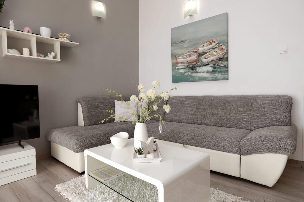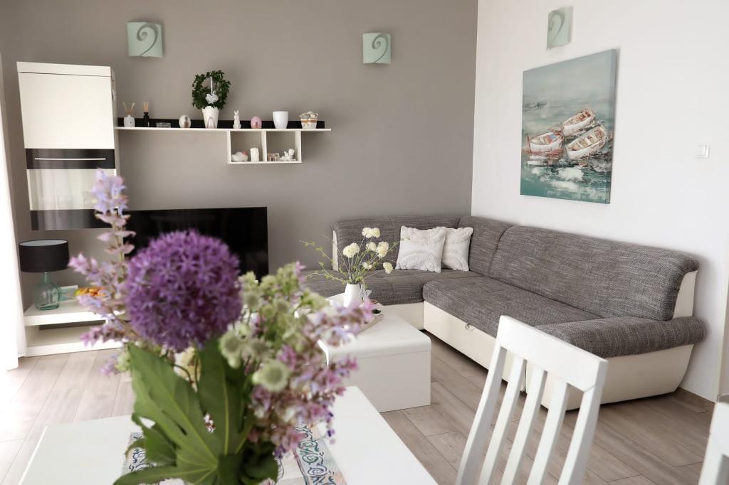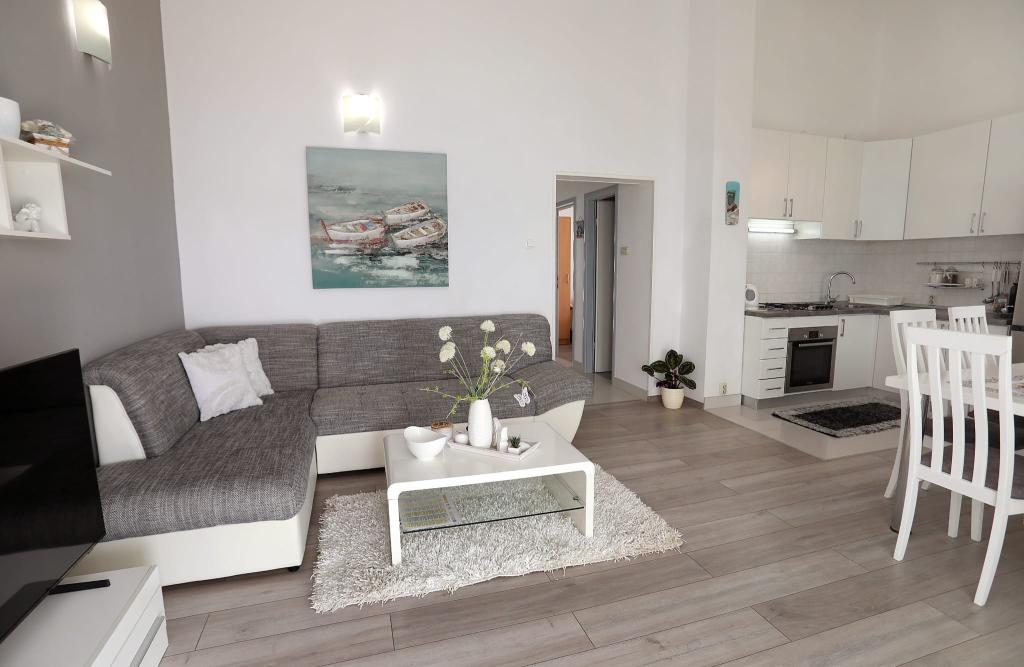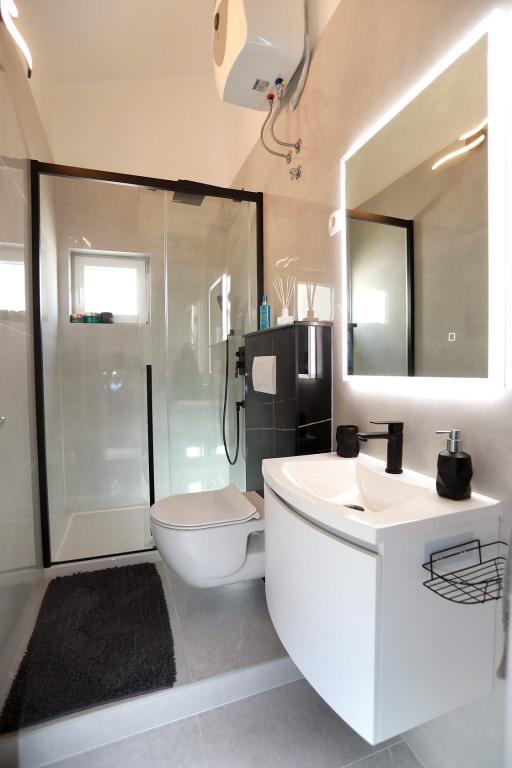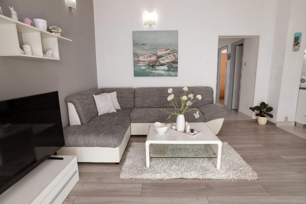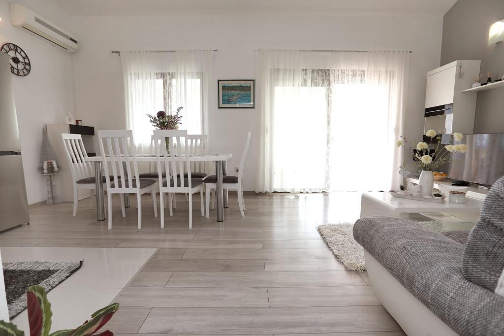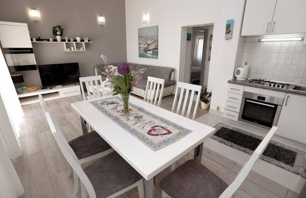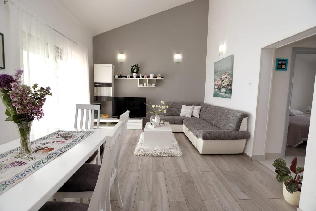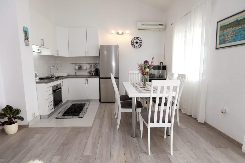 Apartment Katija is located in Okrug Gornji, just 30 m from the seashore. Our apartment offers the perfect combination of peace, comfort and a breathtaking view of numerous Dalmatian islands. It is an ideal destination for families, couples and anyone looking for relaxation in a natural environment, away from the crowds, yet close to all necessary amenities. Enjoy your morning coffee or evening sunset on your private terrace, where a breathtaking view awaits you. Just a 5-minute walk away is a well-maintained beach suitable for children, with shallow water and natural shade - ideal for a family vacation. The main features of the apartment: proximity to the sea, terrace with a beautiful view, fully equipped kitchen with dining area and living room, two bedrooms with double beds, bathroom with shower and basic amenities, free Wi-Fi, air conditioning, TV, free parking. Whether you are planning an active vacation or simply want to enjoy the sun and sea, our apartment in Okrug Gornji offers everything you need for an unforgettable stay.