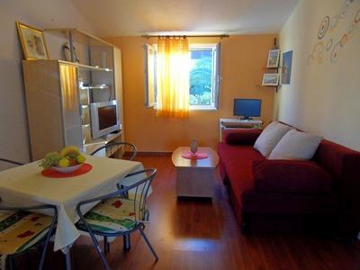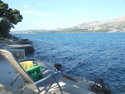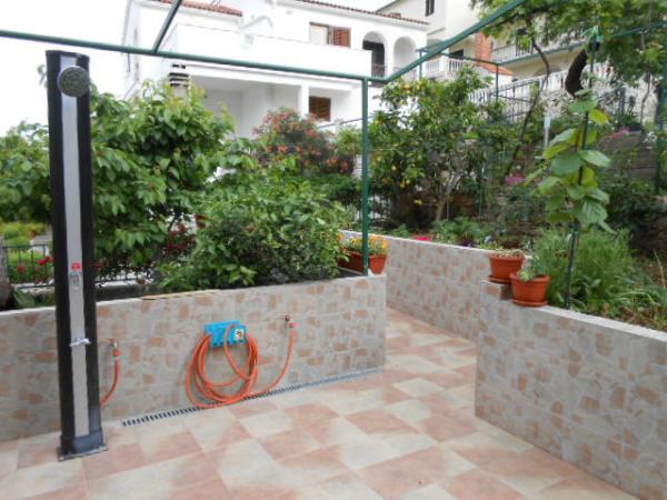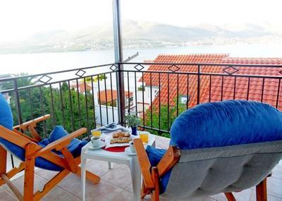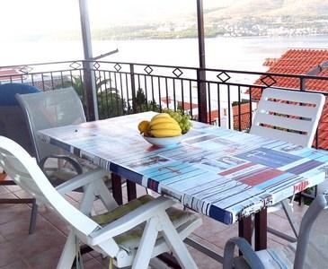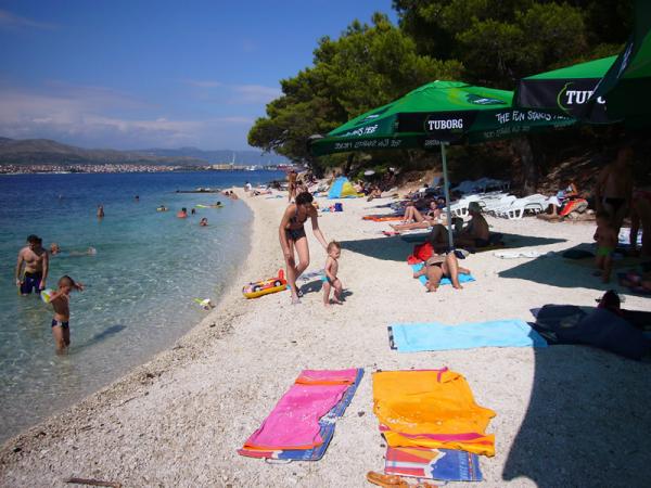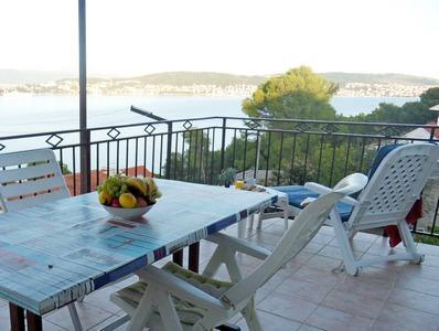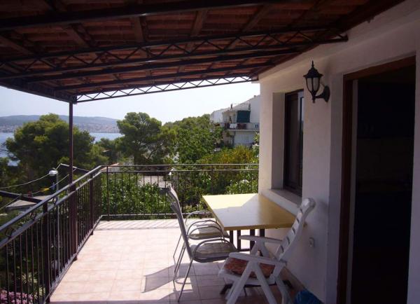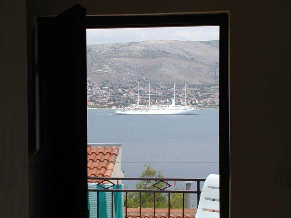 Fully equipped apartment in Okrug Donji on the island of Ciovo near the town of Trogir. The apartment is located on the first floor and has a beautiful view of the sea. The apartment is ideal for families, has one bedroom with double bed, a small room with a double bed for two persons, living room with pull-out bed, kitchen, bathroom - with a shower and a large half-covered terrace overlooking the sea. The apartment is located below the main road (no need to cross the road to get to the sea), the sea is only nearly 80 meters away from the apartment. Note - access to the beach below the apartments is quite steep. Large beach is only 15min walk from the apartment.