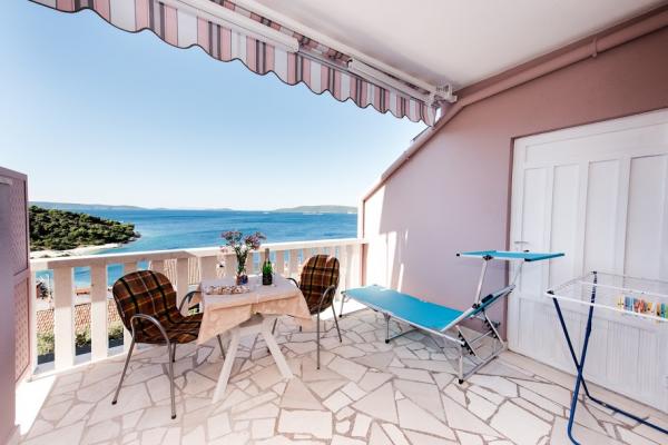 I dreamed of a terrace with a beautiful view of the sea, I could sit down with a glass of wine, watch the ships go ...... the way to read a book, meditate ........ I was not disappointed, it was a super good. The beach was close, quiet and peaceful, quite place for those who like the sun and for those who are looking cool in the shade. Shop well stocked, walk near. Home przemili, apartment clean and tidy, very well equipped. Beautiful and unforgettable view from the terrace - a remembrance for long winter evenings. Near the beautiful Trogir, on evening walks, dinners. Escape from the island a bit tedious, it is the only bridge in rush hour a little stand in traffic, but does not change the fact that it is worth going there to experience the peace and tranquility. There is no loud music, because there are no bars, clubs and the like, there are no crowds. I would recommend this apartment for those who are looking for a quiet place, and there? It is, on top of a lot of sun and azure, miraculous water.