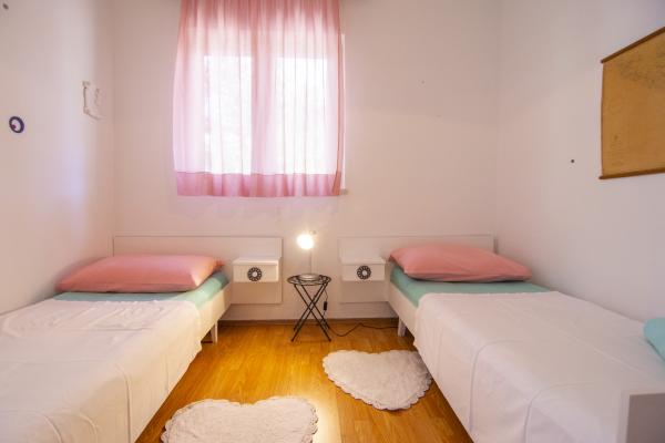 Apartments Lovre are located in a house located 50 meters from the sea. The whole settlement is quite peaceful in relation to the rest of Ciovo, as the main road ends here. The beach is 200 m away from the house. It is reached via which you do not drive the cars so it is safe for the passage. The beach is pebble, maintained and with a shallow beach suitable for children. Right next to the beach there is a public shower that does not charge, and a small cafe bar. On the beach there is no possibility to rent sun loungers and parasols, so you need to have your own. The nearest shop is about 800m away from the house and it is possible to buy it, except for the usual products, and daily fresh meats. In the same place there is post office, ATM and restaurant-pizzeria. Trogir is about 8 km away and Split about 25 km away and we definitely recommend visiting these UNESCO-protected towns.
