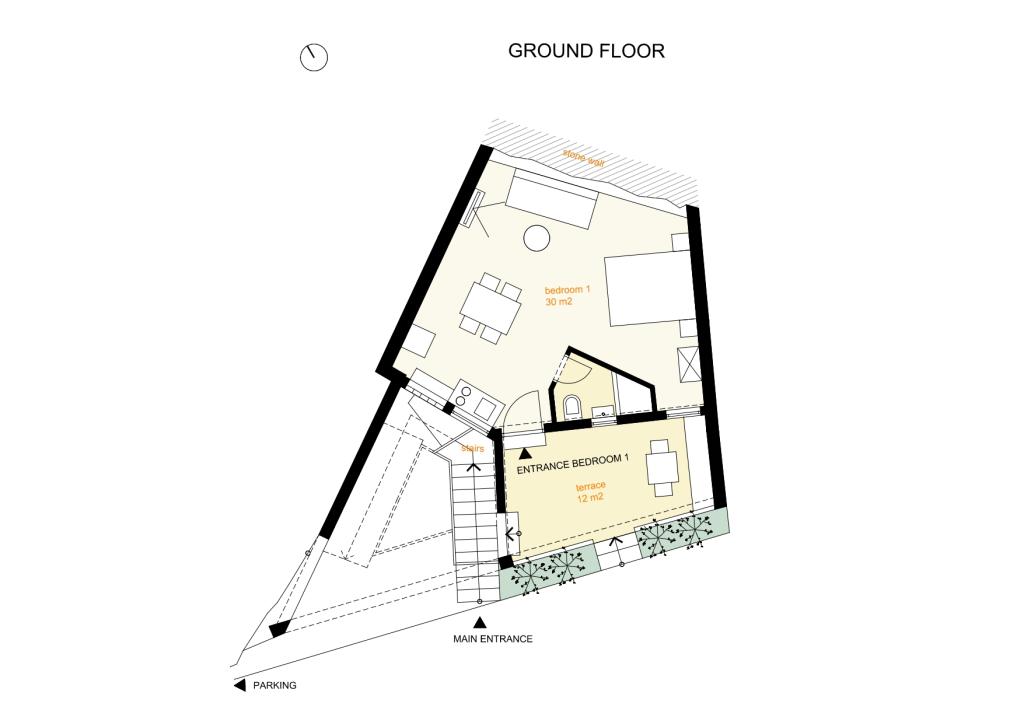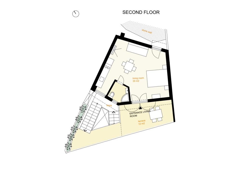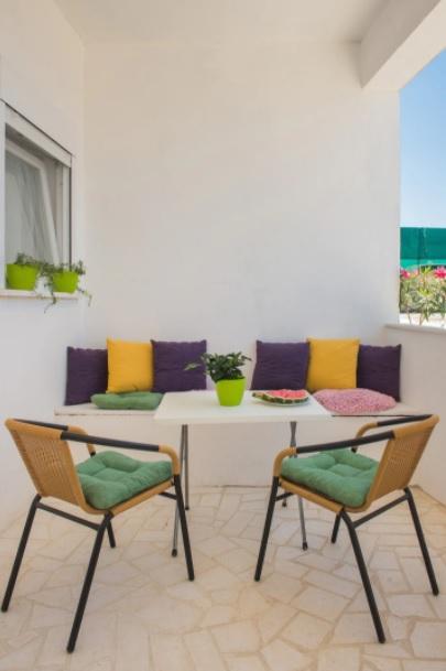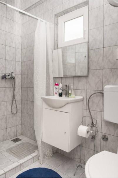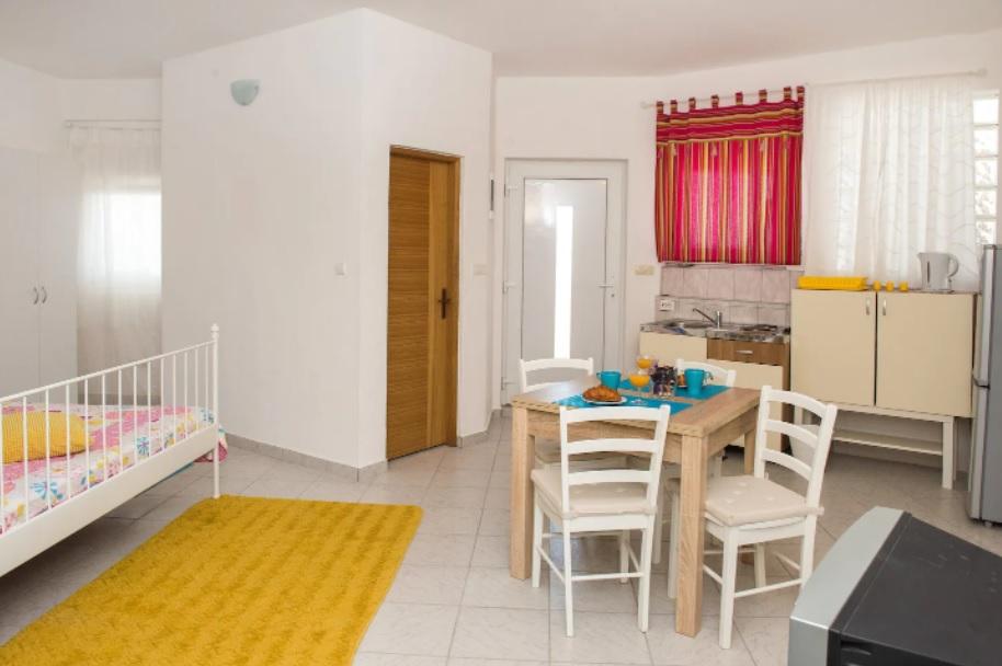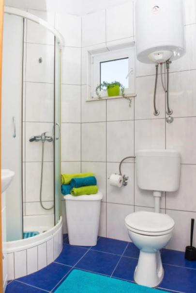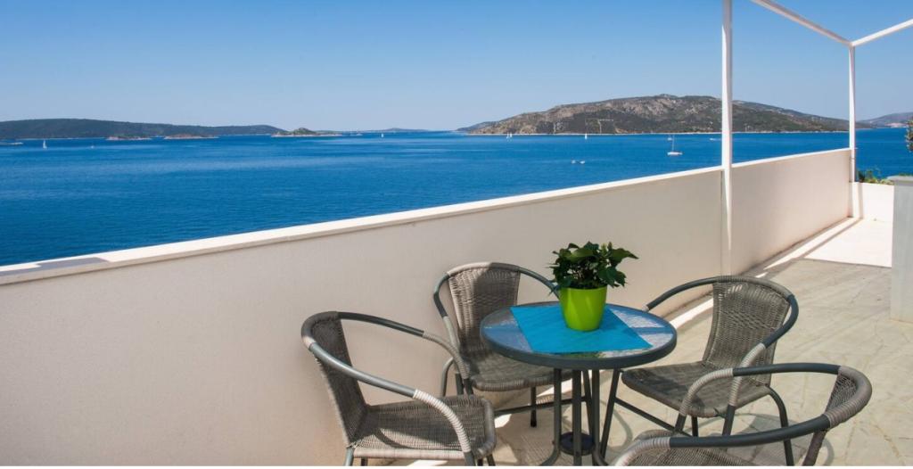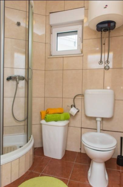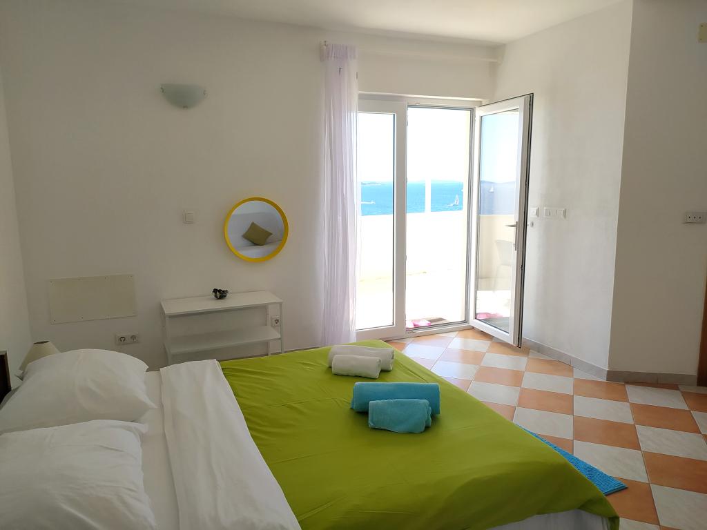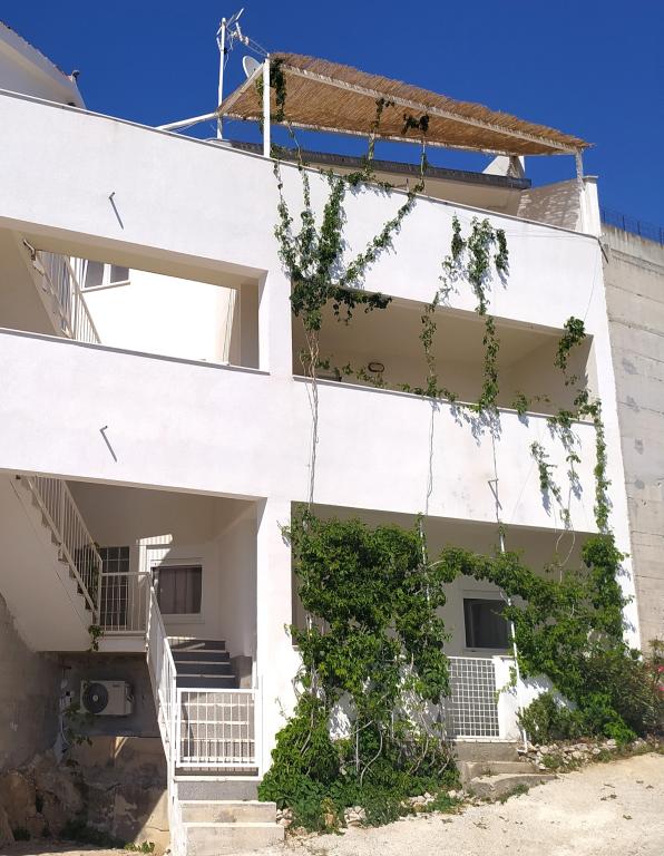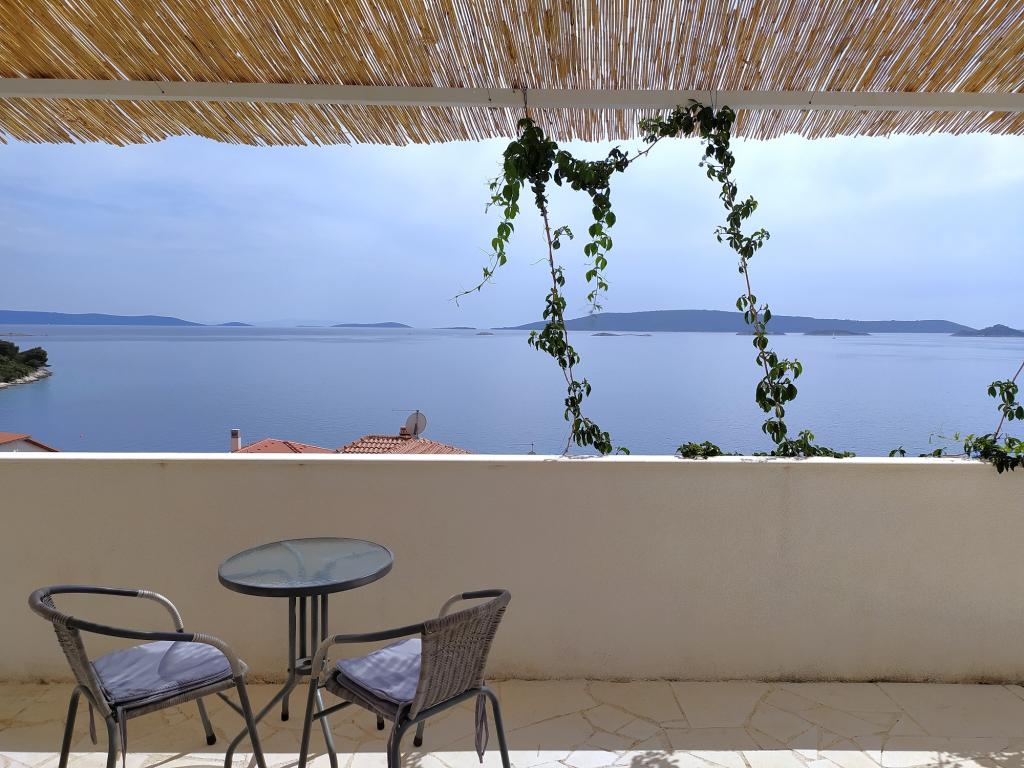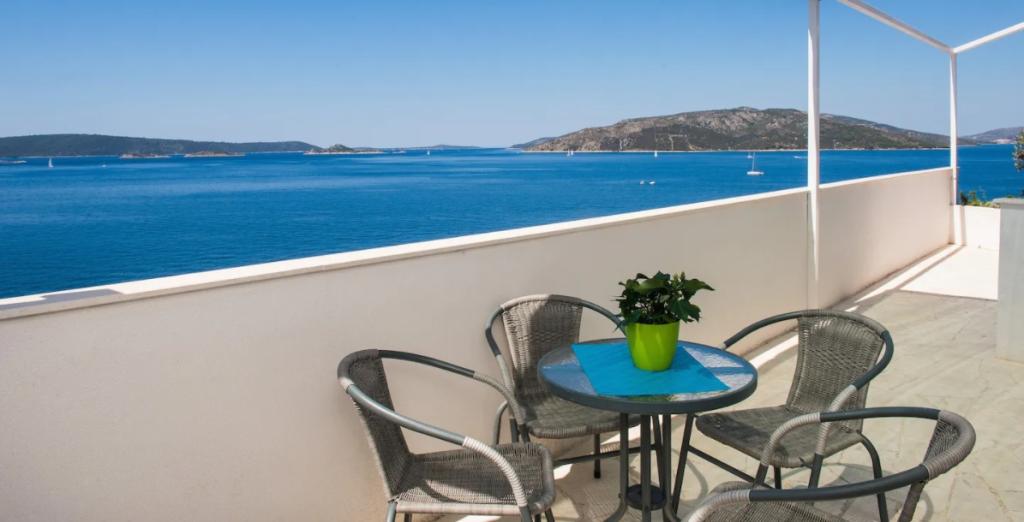 Take it easy at this unique house with the amazing view on more than ten islands. It is situated in a peaceful place called Okrug Donji with very clean beach just couple of steps away (70 m). This three-story house has one bedroom on ground floor, one bedroom on 1st floor and living room on 2nd floor. Each floor is connected with external staircase and has it's own terrace and bathroom. The bedroom on the ground and 1st floor have an inner wall made of real stone which assures mild climate during the summer. About the space: Each bedroom has private bathroom, kitchen with dining table, queen size bed, sofa and private terrace in front of it. Bedroom on ground floor is near the road, but there is a green wall made of plants on the terrace which provides privacy. Bedroom on 1st floor has view on the sea. Living room with kitchen and dining table is on the 2nd floor. It has one sofa and one extra bed, and a bathroom. In front of it there is a terrace with breathtaking view.